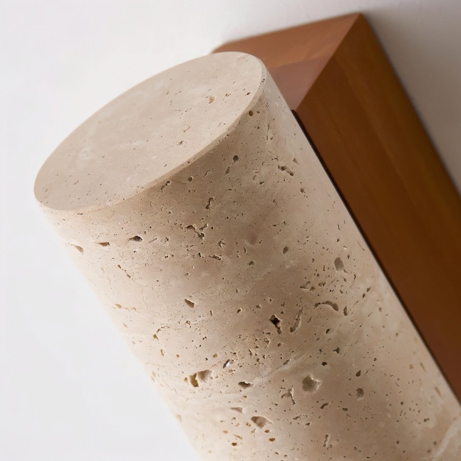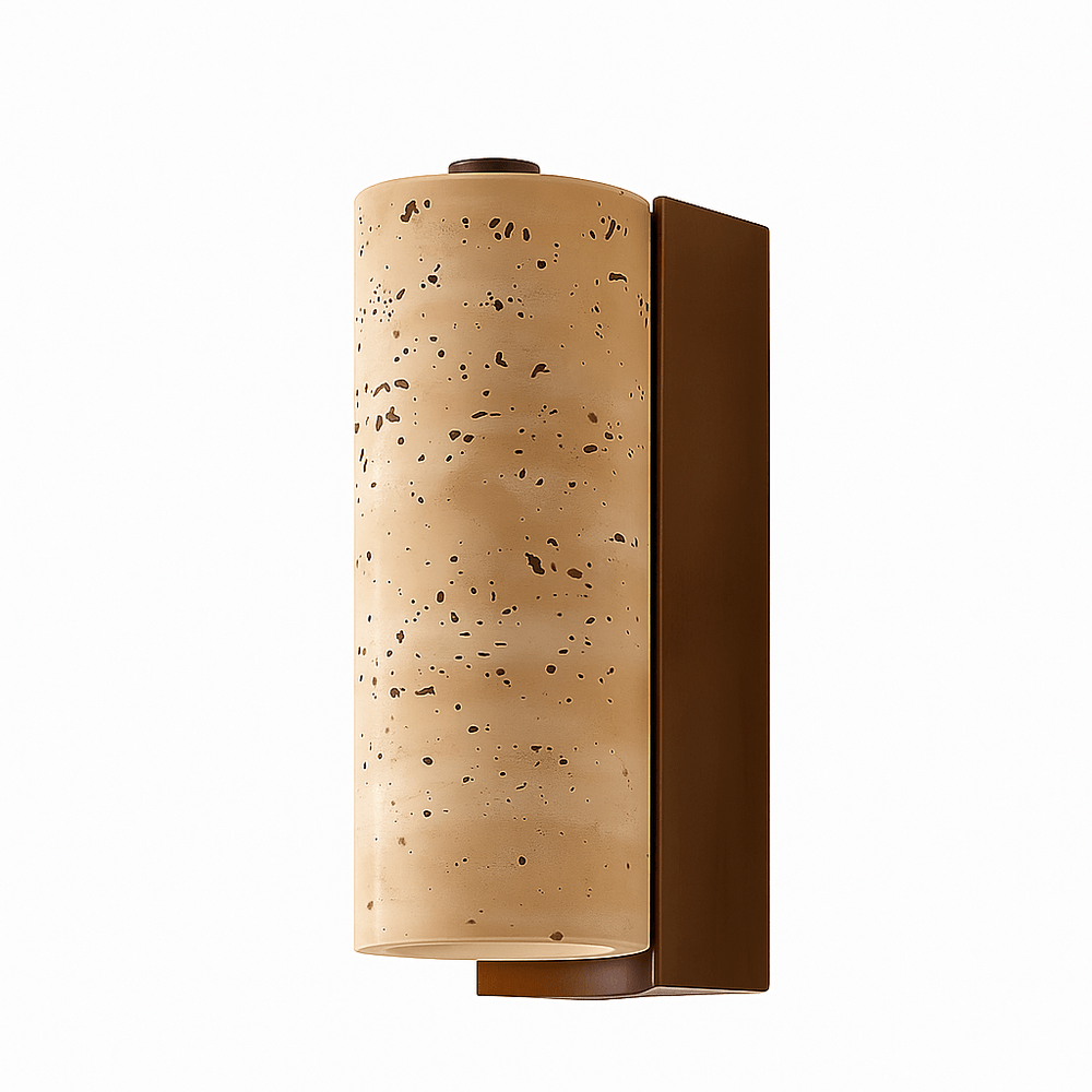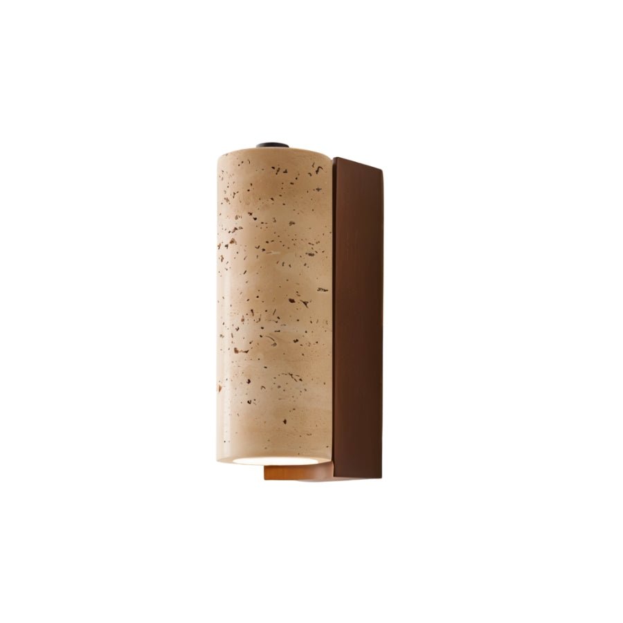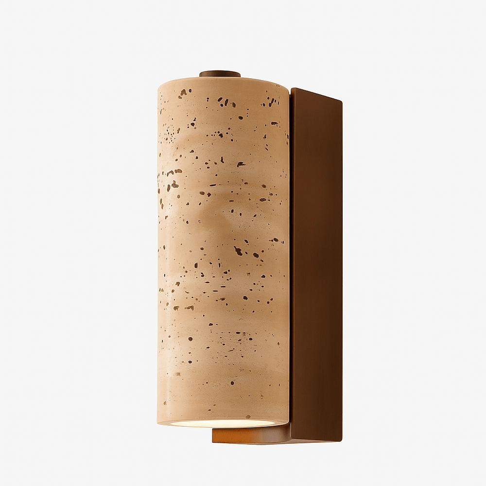 Lurma Travertine Wall Lamp is a refined light fixture combining natural travertine stone and wood for a warm, organic look. Its cylindrical travertine shade diffuses light gently, creating a soft, inviting ambiance, while the wooden base adds a touch of rustic sophistication. This wall-mounted design is perfect for living rooms, bedrooms, hallways, or dining spaces, seamlessly blending with modern, minimalist, or earthy interiors. Its unique material combination elevates both functionality and aesthetic appeal.