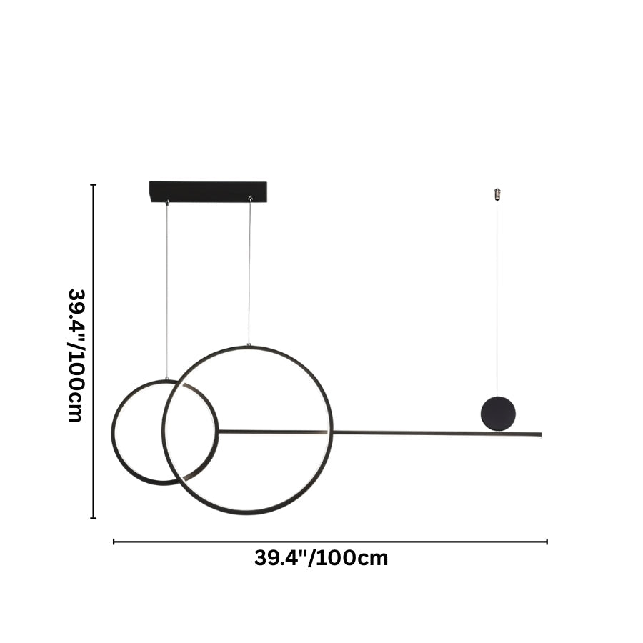Lyzaro Pendant Light features a striking design with two interconnected circular rings in sleek black or gold finishes, offering a bold, modern aesthetic. Crafted from durable acrylic and iron, this light fixture emits a soft, ambient glow that enhances contemporary interiors. The minimalist yet sophisticated design makes it ideal for installation above kitchen islands, dining areas, or modern living rooms. With its geometric shapes and clean design, this pendant light adds a touch of elegance and style to any space.