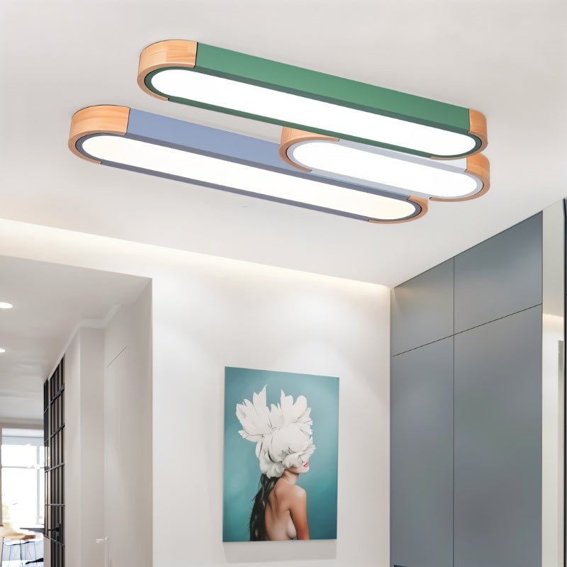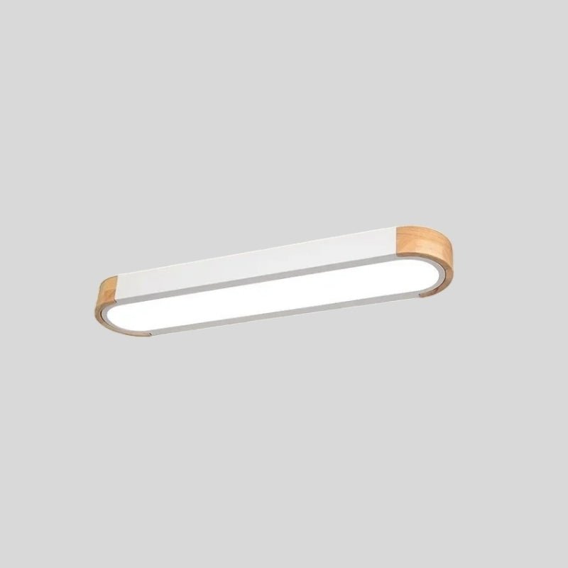 The Mabli ceiling light is a sleek, modern light fixture that blends clean geometry with natural accents. Crafted from durable iron and framed with smooth wooden ends, its elongated oval form offers a streamlined profile perfect for minimalist interiors. The flush-mounted design ensures a seamless look against ceilings, while its broad diffusion panel provides bright, even illumination. Ideal for kitchens, hallways, bathrooms, or home offices, this ceiling light combines functionality with refined style. Mabli delivers contemporary elegance and efficient lighting in one beautifully balanced fixture.