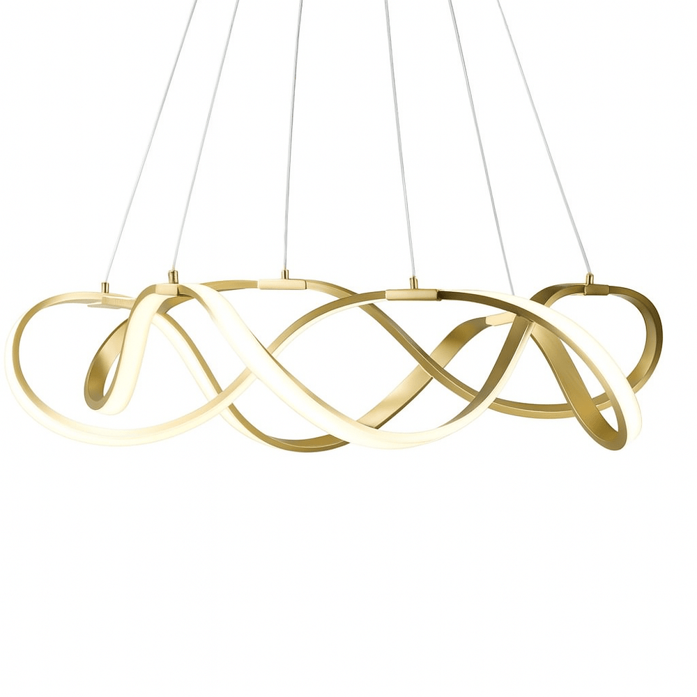 The Mariquita Chandelier boasts a meticulously crafted, sinuous design fashioned from top-tier aluminum, complete with integrated LEDs that transform it into a true masterpiece, glowing with brilliance. Available in both dazzling chrome and opulent gold, this chandelier infuses an aura of luxury and magnificence into any space it adorns, enchanting all who behold its captivating beauty. This elegant and modern chandelier would be a striking centerpiece above a dining table or in a spacious living room.