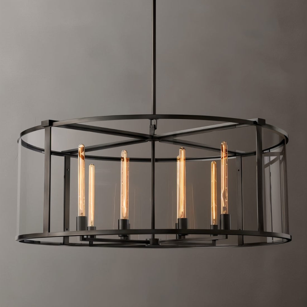 The Matkon Round Chandelier seamlessly complements historical home aesthetics by reimagining the classic lantern design with a contemporary twist. Its glass volumes, suspended within lightweight metal frames, create an illusion of floating elegance that harmonizes with the timeless sophistication of historical interiors. The chandelier's sturdy, clean lines and graceful proportions embody both strength and elegance, making it a versatile piece that enhances diverse settings. Available in finishes like Lacquered Burnished Brass, Matte Black, and Polished Nickel, the Matkon Round Chandelier integrates artistry and visual appeal, elevating spaces with a blend of tradition and modernity.