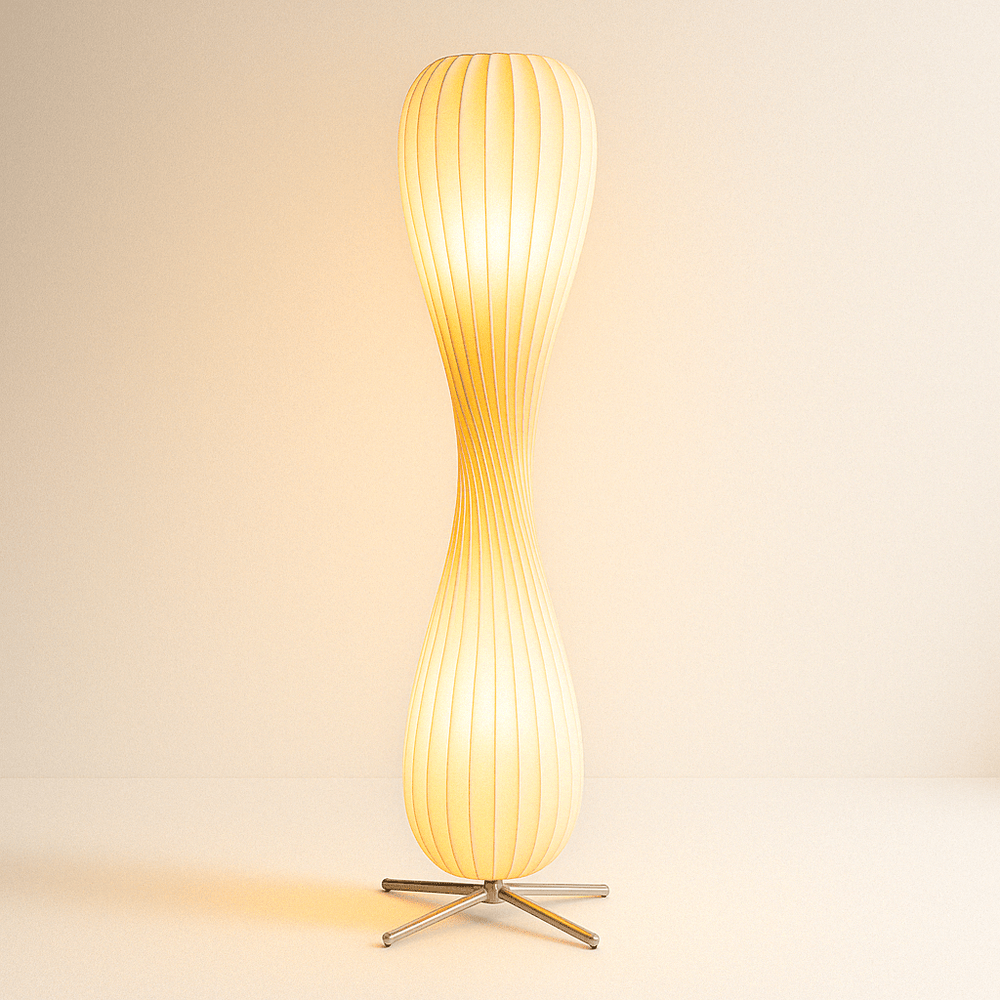 The Modern Twist Floor Lamp has a rounded bottom for stability, making it stable on various surfaces.