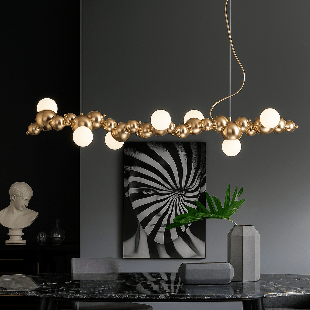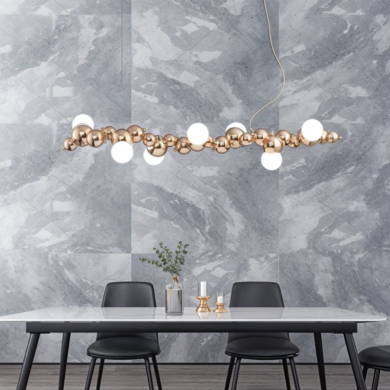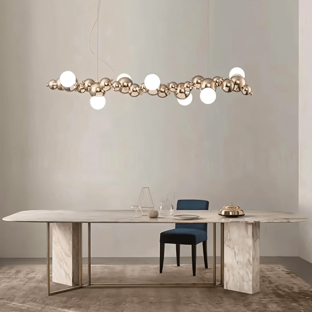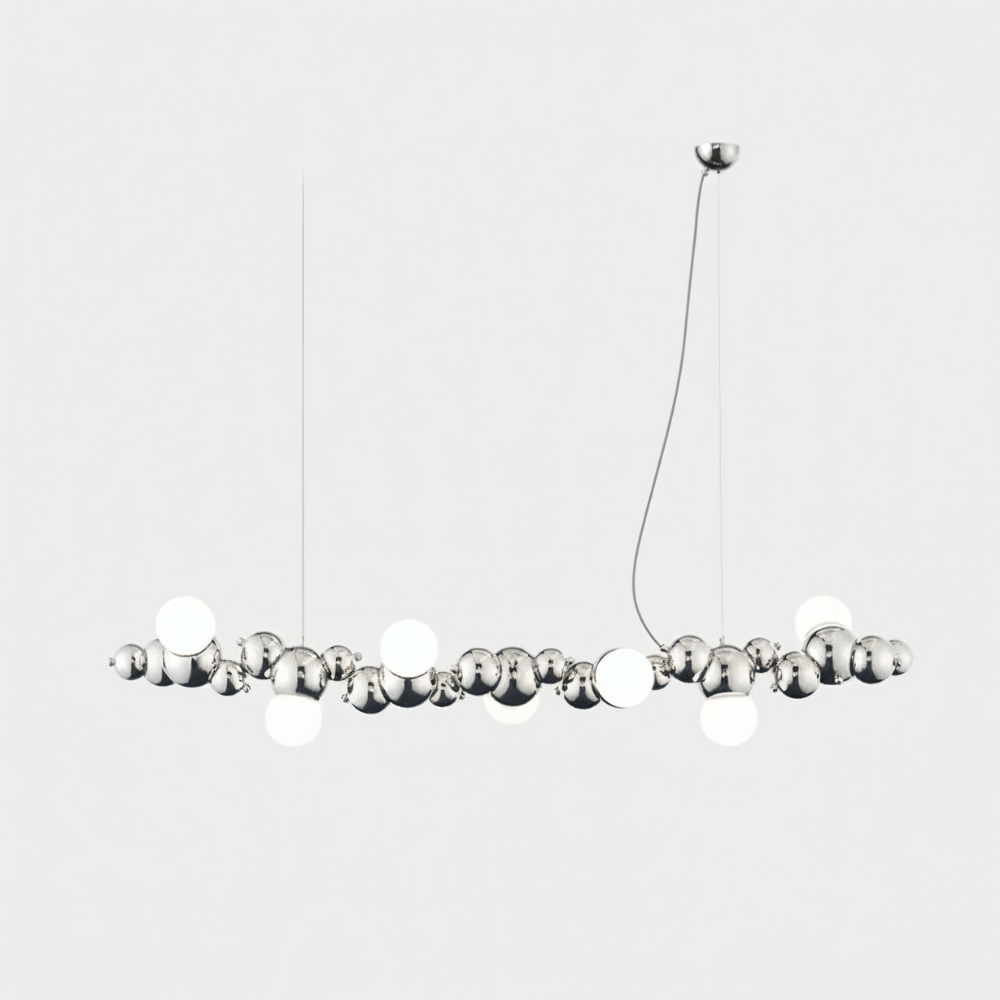 Absolutely! The Molecules Chandelier features a 2-meter adjustable wire, allowing you to customize the height to perfectly suit your space. Whether you want it to hang low over a dining table or higher up in a grand foyer, this chandelier offers the flexibility to meet your design needs.