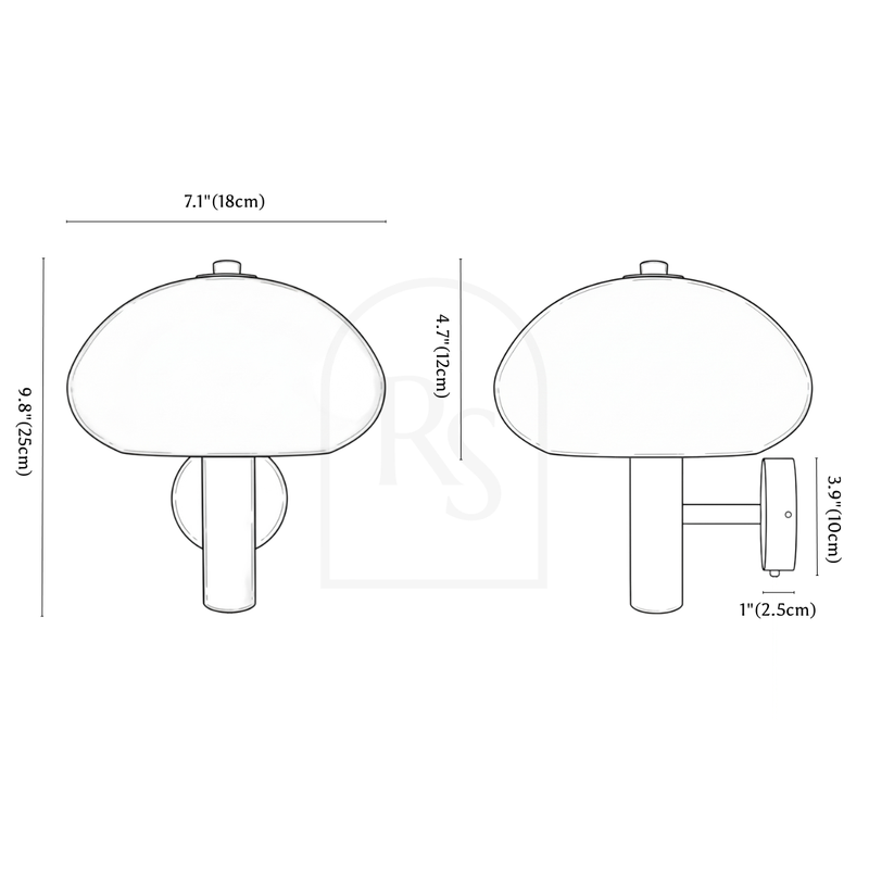 The Nameko Wall Lamp, with its Bauhaus-inspired design and mushroom-shaped glass lampshade, offers a timeless aesthetic and functional elegance suitable for various settings, including living rooms, corridors, and bedside installations. This lamp is designed to provide a soft, milky light that enhances the ambiance of any room. It is available in versions with or without a plug, catering to different installation needs. The lamp is easy to mount, ensuring no damage to wall surfaces, and features LEDs with a 50,000-hour lifespan, operating within a voltage range of 90-260V for longevity and consistent lighting. Dimensions are conveniently compact at 7.1" x 9.8" (18cm x 25cm), making it versatile for both spacious and intimate areas. The Nameko Wall Lamp not only serves as a functional lighting fixture but also acts as a statement piece that complements a wide range of interior designs.