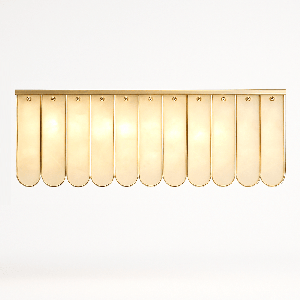 - Cascading shell panels create a soft, diffused glow with natural warmth.
