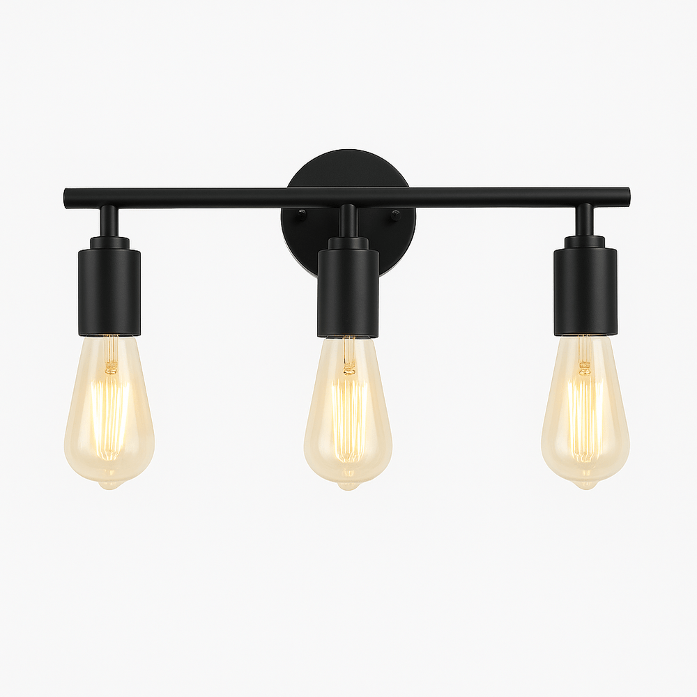 The Norvins Wall Lamp is a sleek and functional iron light fixture designed for bathroom vanity mirrors. Featuring a minimalist bar structure with three exposed bulb holders, it offers ample lighting while maintaining a contemporary aesthetic. Available in four colors, its versatile design complements modern and industrial-inspired interiors. Perfectly suited for above-mirror placement, it enhances bathroom spaces with its clean and purposeful layout.