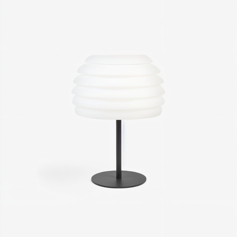 The Novyra table lamp features a layered, wave-like design, crafted from durable aluminum and steel with a plastic diffuser for a soft, ambient glow. Its tiered shade creates unique light diffusion, adding depth and warmth to any setting, indoors or outdoors. IP44 rated for water and dust resistance, this lamp combines modern style with functional durability, making it a striking and reliable choice for versatile lighting.