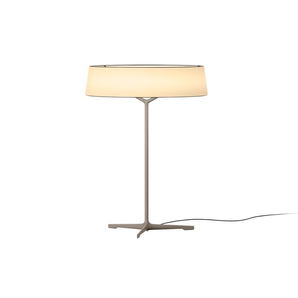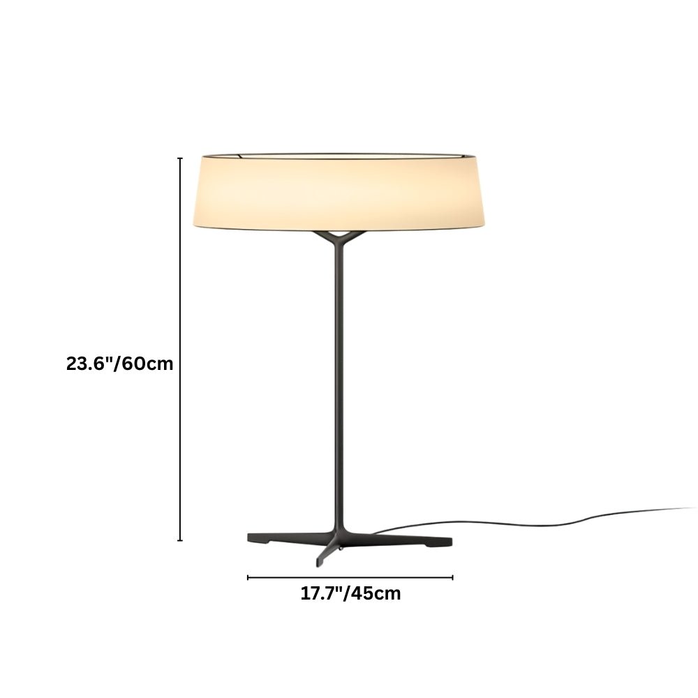 The Odeon Table Lamp features a sleek aluminum frame with a fabric drum shade, creating a refined silhouette. Its Y-shaped base adds stability and a modern touch, while the soft diffused light enhances ambiance. Perfect for bedside tables, workspaces, and contemporary living areas.