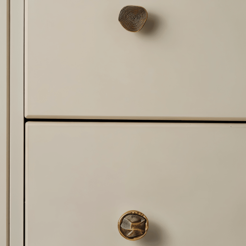 The Olea Knob is made from solid brass and features a unique spiral texture that adds depth and character to your cabinets and drawers. Its rounded shape catches the light beautifully, turning simple furniture into a standout detail. Perfect for kitchen cabinets, bathroom vanities, dressers, and wardrobes, this brass cabinet knob adds a modern artistic touch while staying comfortable for everyday use.