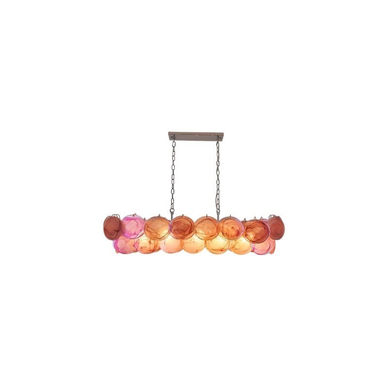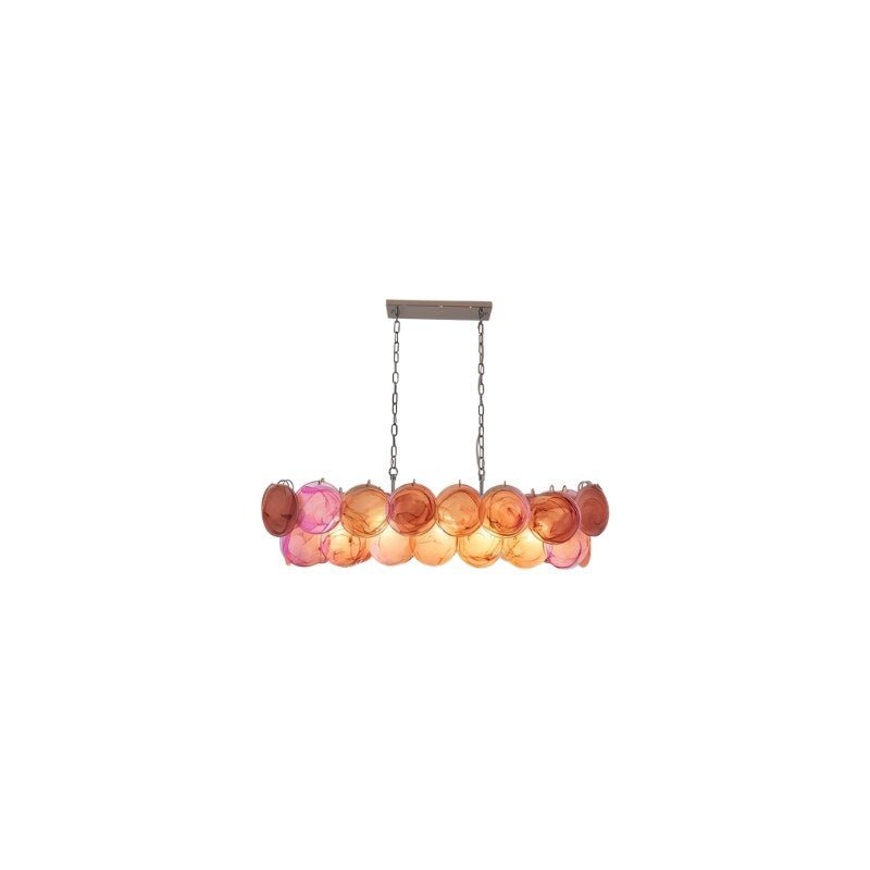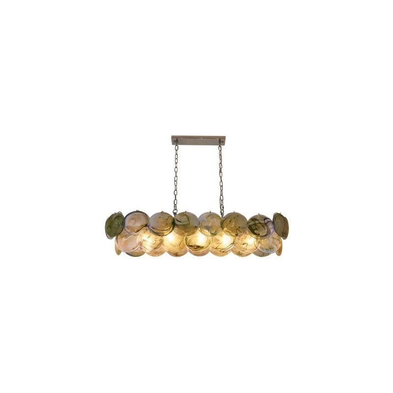 The Olvenis Chandelier is a statement light fixture crafted from metal and glass, designed to add depth and visual intrigue to any space. Its cascading disc design, featuring a mix of green and iridescent glass elements, creates dynamic light reflections. Available in multiple sizes, styles, and colors, it adapts seamlessly to modern, eclectic, or artistic interiors. Ideal for living rooms, dining areas, or boutique spaces, it serves as both functional lighting and a sculptural focal point.