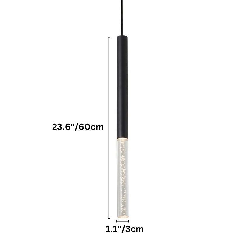 The Omorfia Pendant Light is constructed with a cylindrical aluminum frame and features accents in white, black, and gold. The shade is made of acrylic and is filled with an abundance of magical bubbles that emit LED lights. For a seamless installation, we recommend using a professional installer.