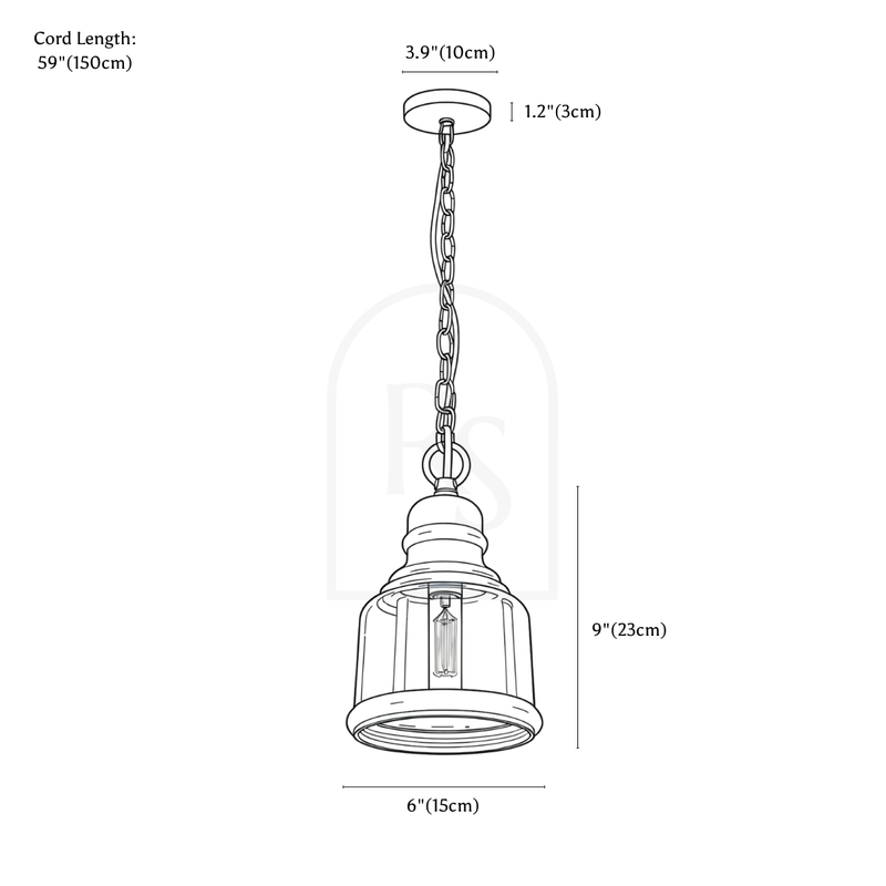 Wattage (Lumens): 15W (1500lm) Weight: 1.8 lbs (0.8 kg) Material: Glass, Iron Finish: Black Light Source: LED Light Bulb (replaceable) Bulb Included: Yes Number of Bulbs: 1 Bulb Base: E27 Dimmable: Upon Request Voltage: 90-260VAC Installation Type: Hardwired Chain/Cord Length: Up to 4.9ft (1.5 meter) Adjustable Cord: Yes Canopy/Backplate Dimensions: D3.9"(10cm) Sloped Ceiling Compatible?: Yes Certifications: UL, CCC, CE, CQC, EMC, FCC, GS, LVD, PSE, ROHS, SAA, and VDE