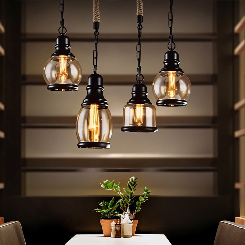 The Ophelia Pendant Light features a captivating design with clear glass globes suspended from a combination of rope and chain, evoking a rustic and industrial aesthetic. This unique light fixture is perfect for illuminating dining rooms, kitchens, and living spaces, adding a touch of vintage charm to any interior.