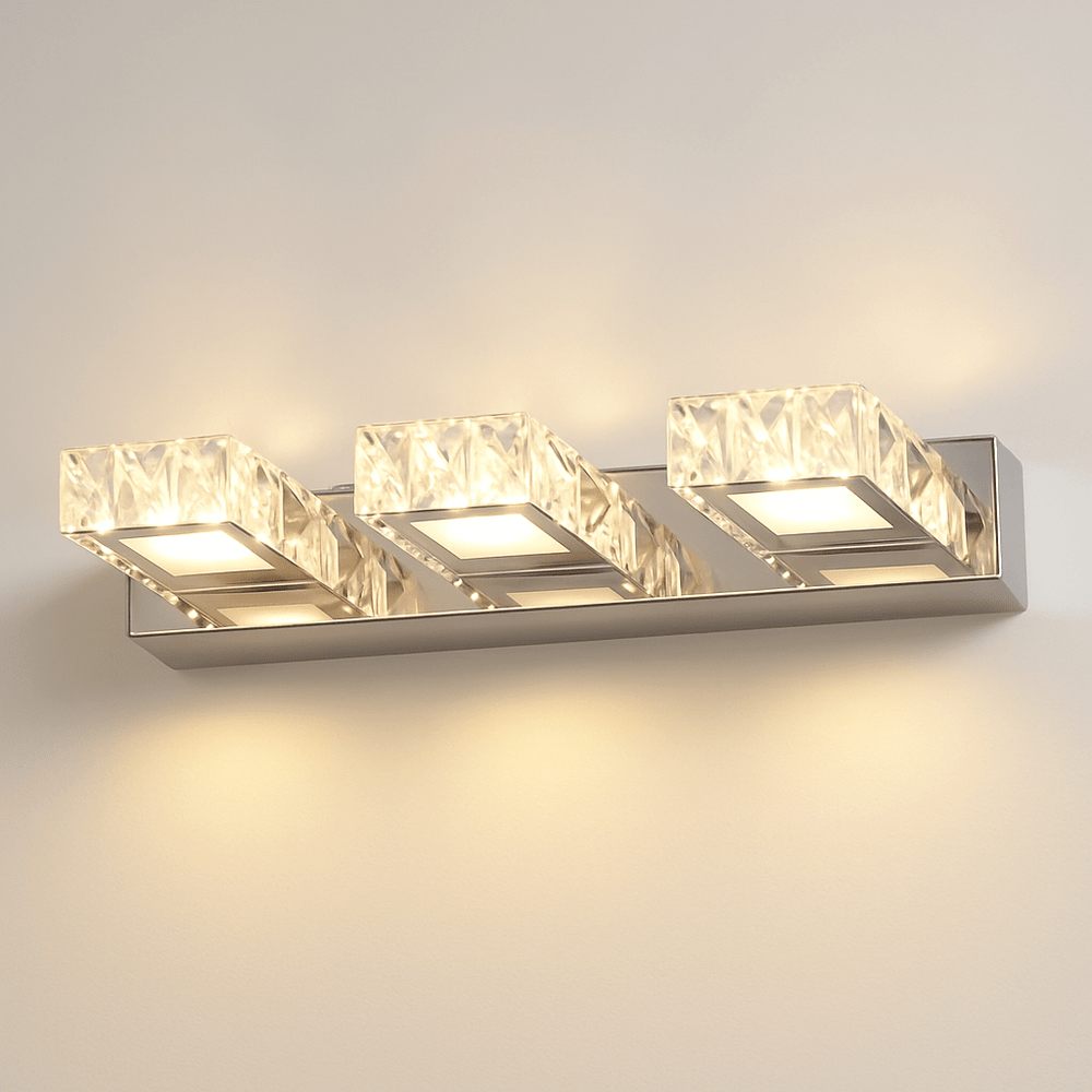 Crystal and stainless steel wall lamp delivers a soft, ambient glow — perfect for enhancing contemporary living rooms, hallways, and bedrooms with understated elegance.