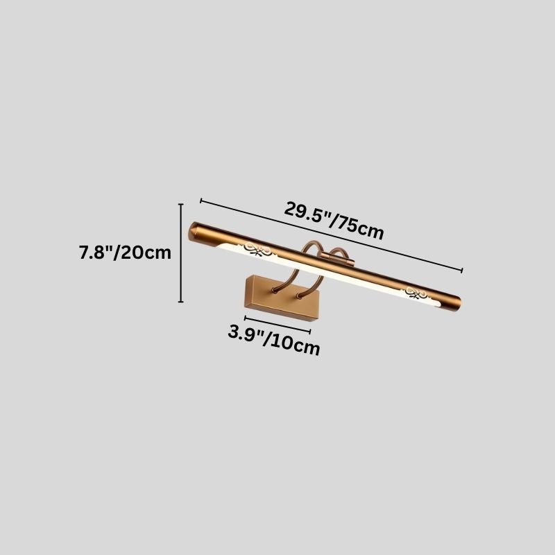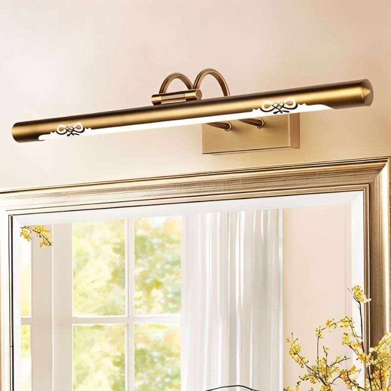 Opvion Wall Lamp is a sleek copper and acrylic light fixture designed for bathroom vanity mirrors. The elongated tubular form features delicate cutout patterns, diffusing light evenly. Its warm metallic finish enhances both modern and traditional spaces. Available in three sizes, it provides focused illumination for grooming tasks. Ideal for bathrooms, it can also accent hallways or dressing areas.