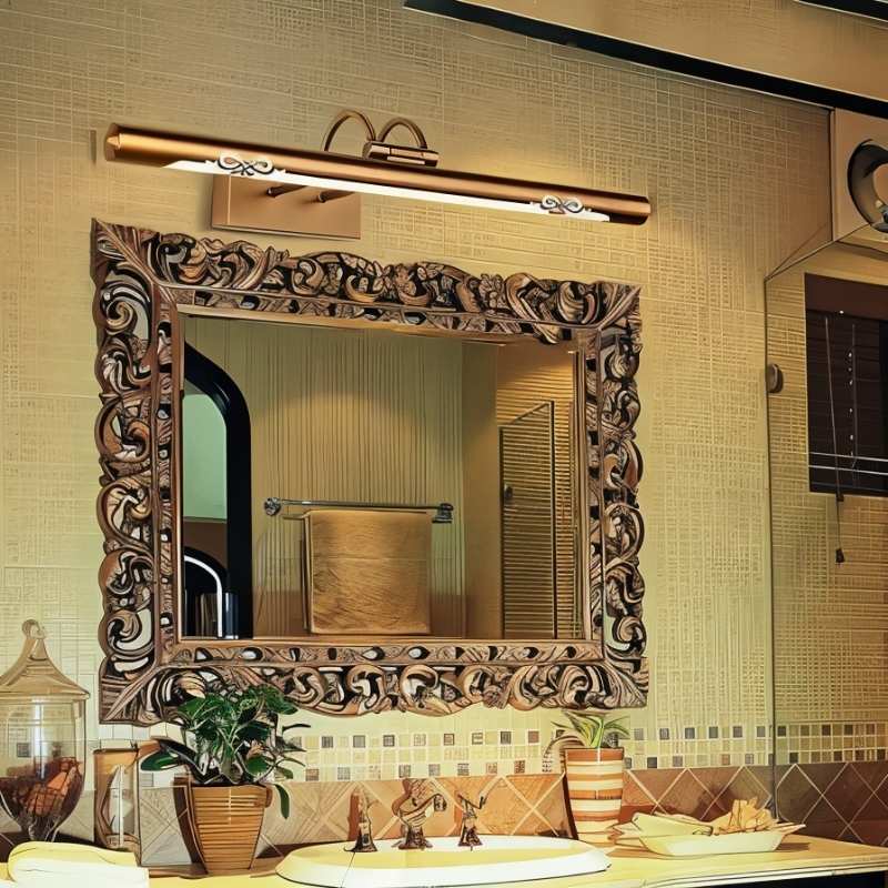 Copper and acrylic fixture delivers evenly diffused lighting for grooming tasks — perfect for bathrooms, hallways, and dressing areas.
