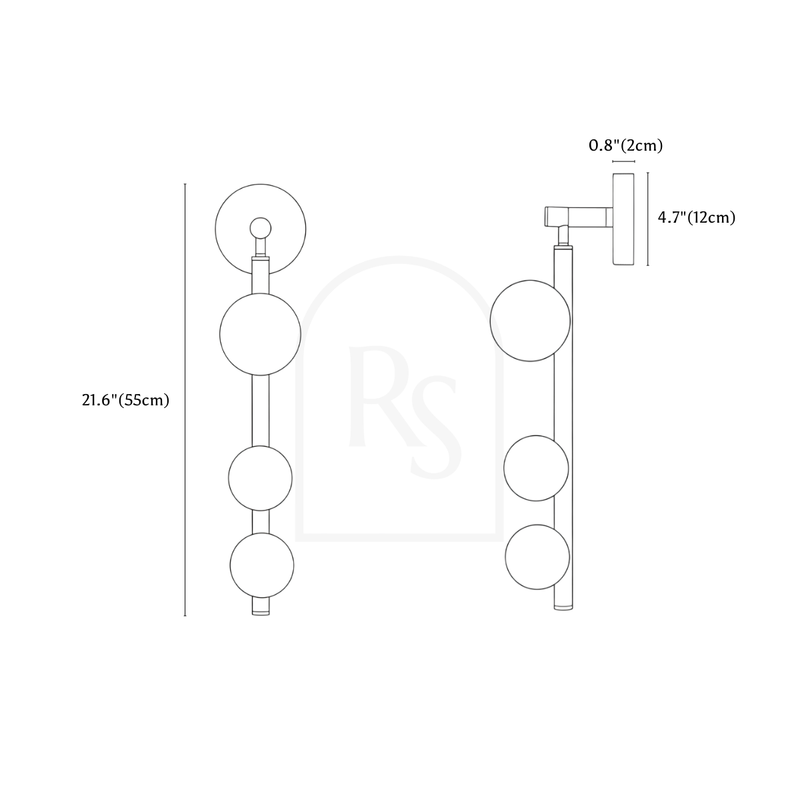 The Orbos Wall Lamp is a modern light fixture crafted from durable metal with three frosted spherical glass shades for soft, diffused lighting. Its gold-tone vertical frame adds a striking contrast, making it a statement piece for hallways, bedrooms, living rooms, or accent walls. Blending functionality with artistic elegance, it's ideal for contemporary and minimalist interiors.