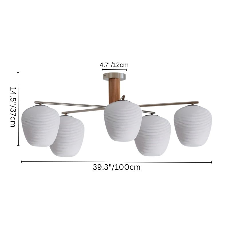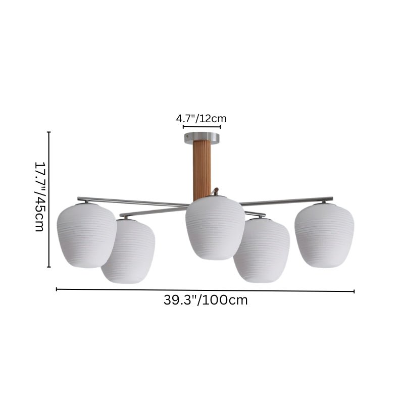 Product Dimensions: 14.5" x 39.3" / 37 x 100cm / 60W, 17.7" x 39.3" / 45 x 100cm / 60W Material: Wood, Glass Finish: Brown, Wood Light Source: LED Light Bulb (Replaceable) Bulb Included: Yes Number of Bulbs: 5 Bulb Base: E26 Dimmable: Upon Request Wattage: 60W Lumens: 100 lm/W Voltage: 90-260VAC Installation Type: Hardwired Canopy/Backplate Dimensions: 4.7" / 12cm Sloped Ceiling Compatible?: No Certifications: UL, CCC, CE, CQC, EMC, FCC, GS, LVD, PSE, ROHS, SAA, and VDE
