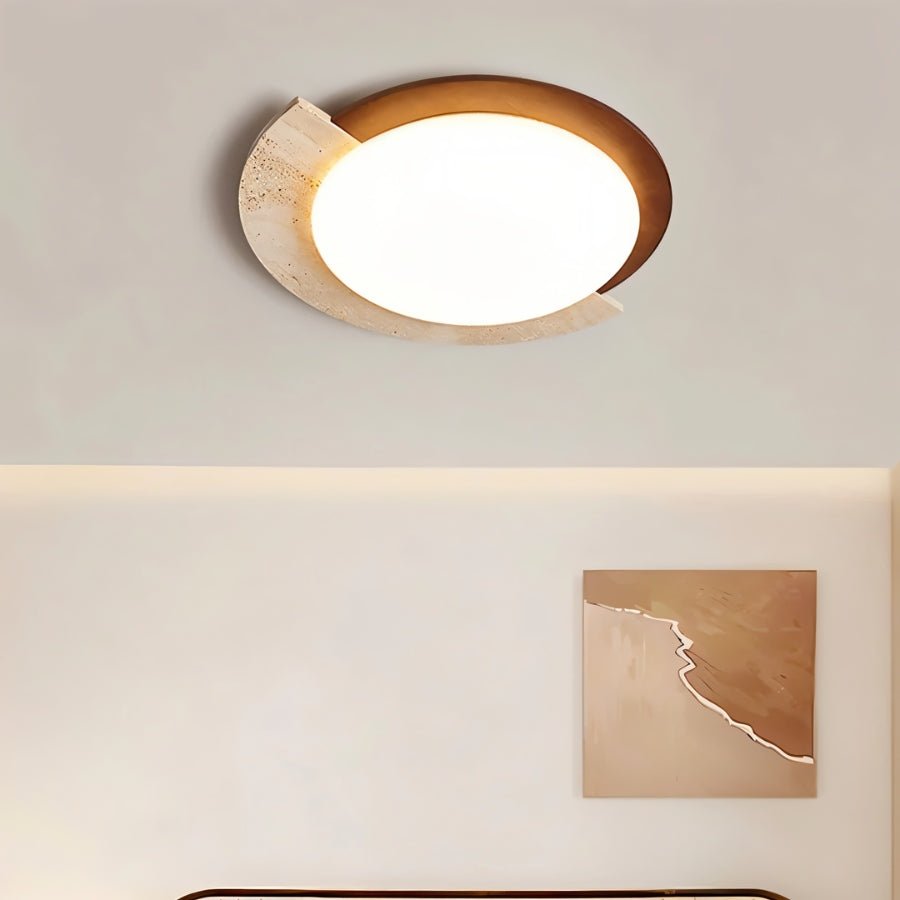 The Ozama travertine light fixture combines the rustic elegance of travertine with a minimalist Wabi Sabi aesthetic, offering a refined yet natural appeal. Crafted with precision, this lamp features clean, organic lines that enhance the raw beauty of the stone, showcasing its unique textures and earthy tones. The versatile design allows for installation as either a wall lamp or ceiling light, making it suitable for various interiors aiming for a balanced, tranquil ambiance.