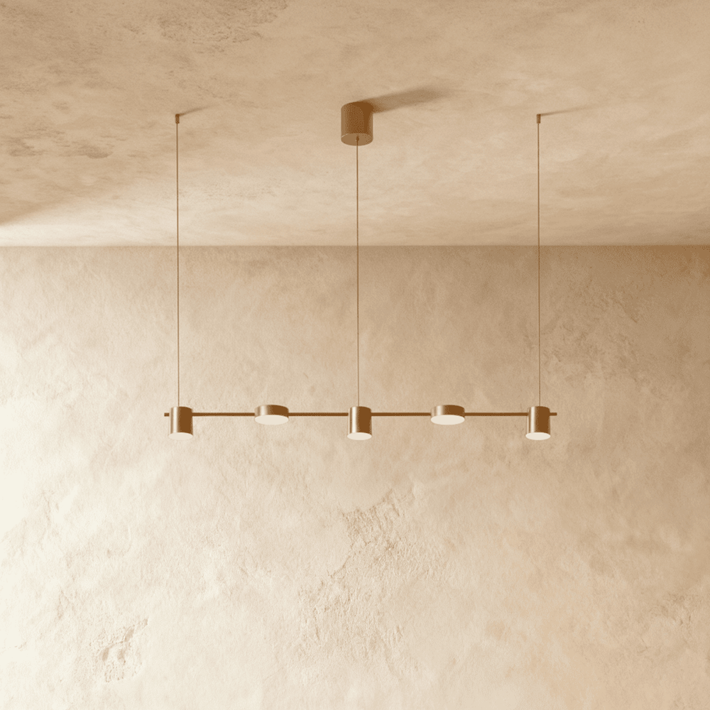 Gold powder-coated finish and acrylic-capped LEDs provide soft, ambient illumination — perfect for creating a cozy atmosphere in living rooms and dining areas.