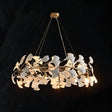 The Panra Chandelier is a show-stopper naturalist piece that gives any space a lavish touch. It Is a blend of truly exquisite proportions, that features a variety of exquisite leaf designs made of acrylic and ceramic attached to metal wires with mini light shades. This chandelier enhances your living space and generates an elegant aura. Panra is suitable for use in workplaces, living rooms, dining rooms, galleries, and other residential and commercial spaces.