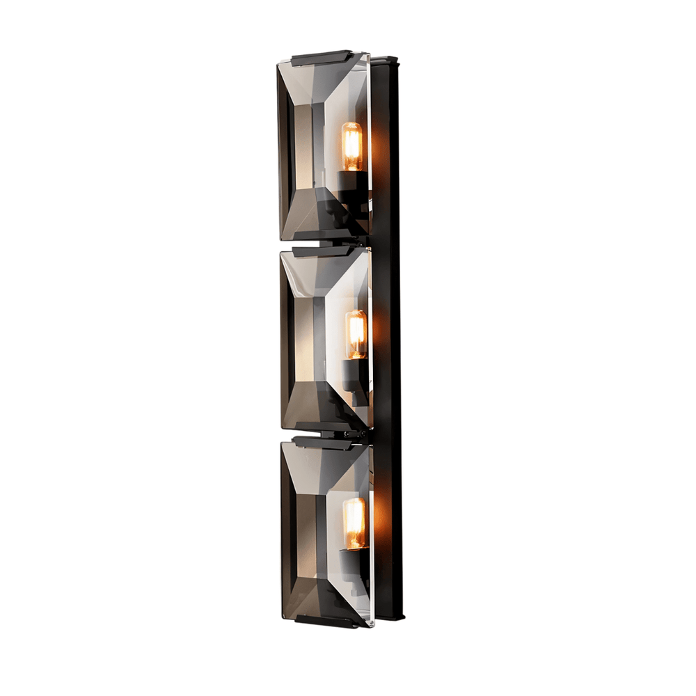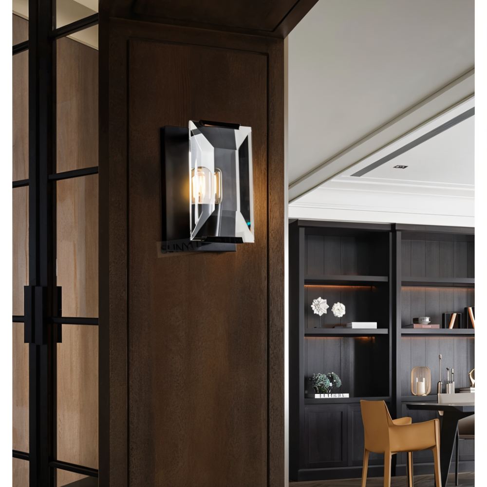 The Parai Wall Lamp stands out for its geometric crystal design and stainless steel frame, combining modern structure with radiant light diffusion.