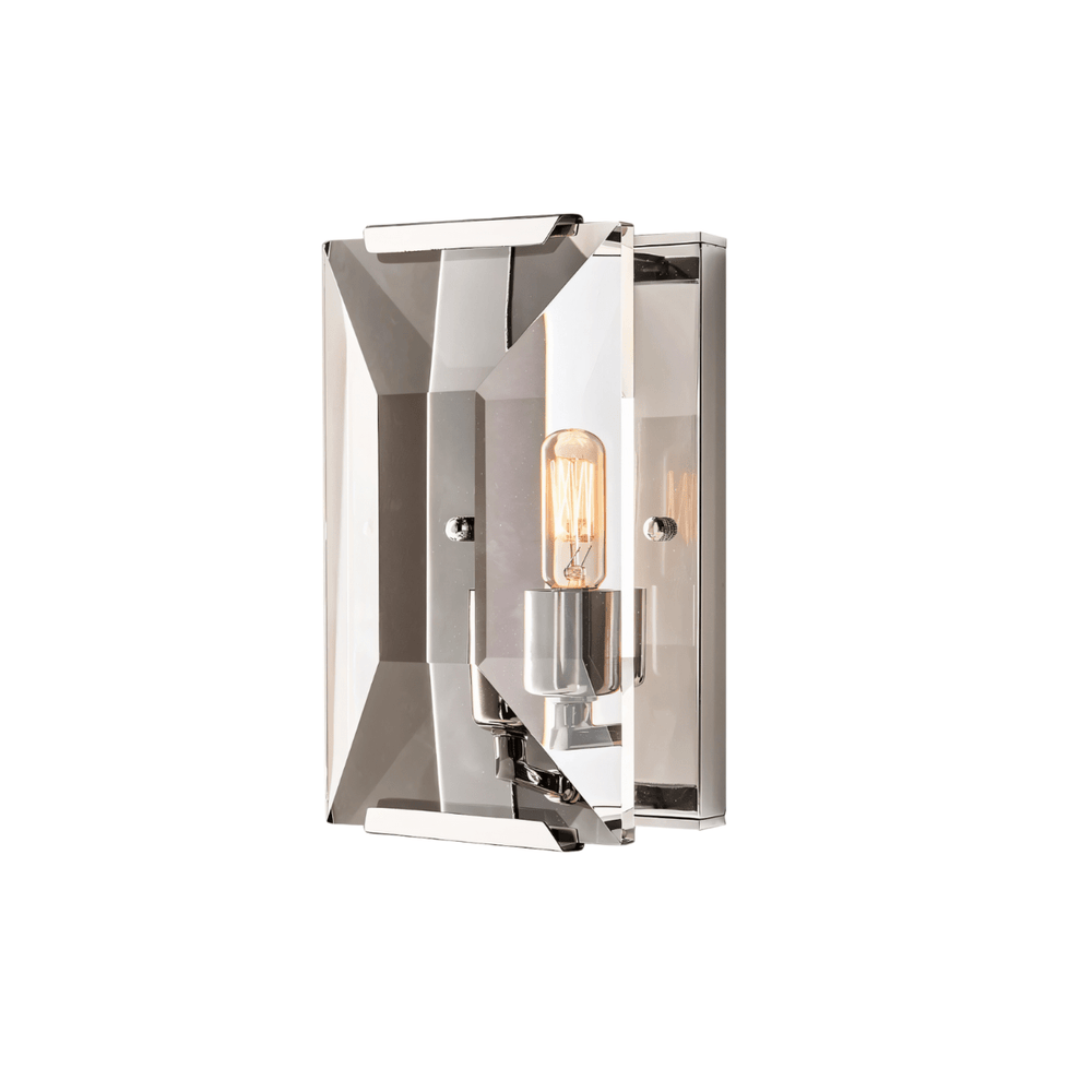 Parai Wall Lamp is a refinedlight fixture designed with a bold geometric structure that reflects modern sophistication. Made from stainless steel and crystal, it features a faceted crystal panel that frames the light source, creating depth and dimension through precise angular cuts. The stainless steel base enhances contrast and stability while complementing the crystal’s reflective brilliance. This light fixture is ideal for hallways, living rooms, and bedrooms, where its sleek form and luminous clarity add a statement of elegance.