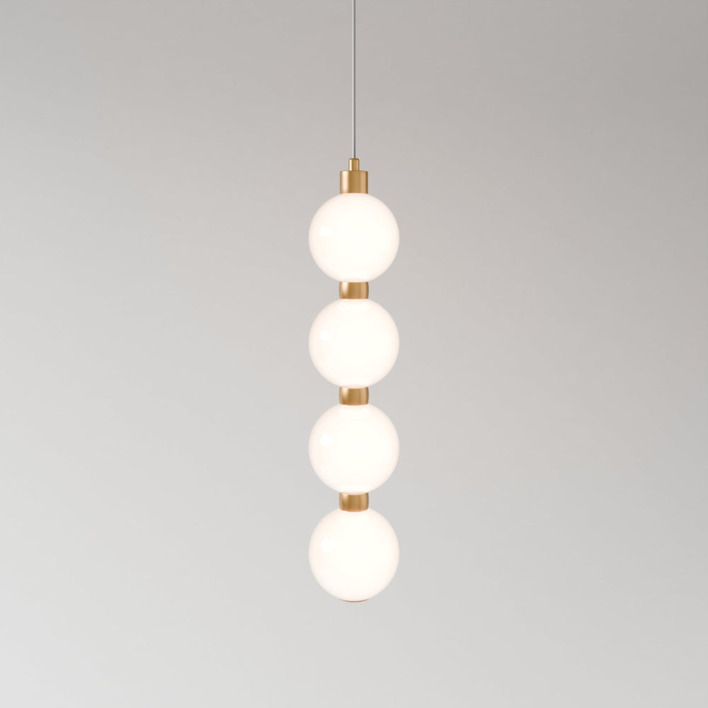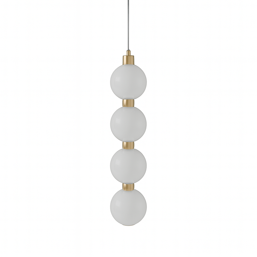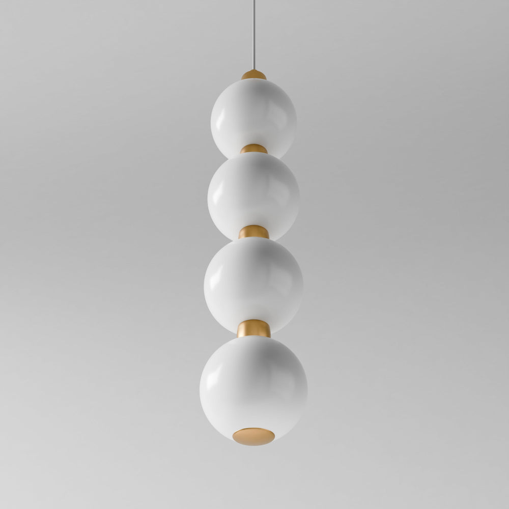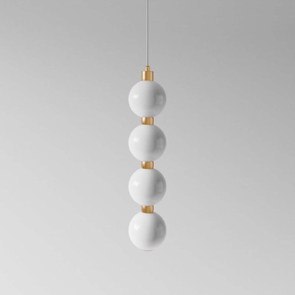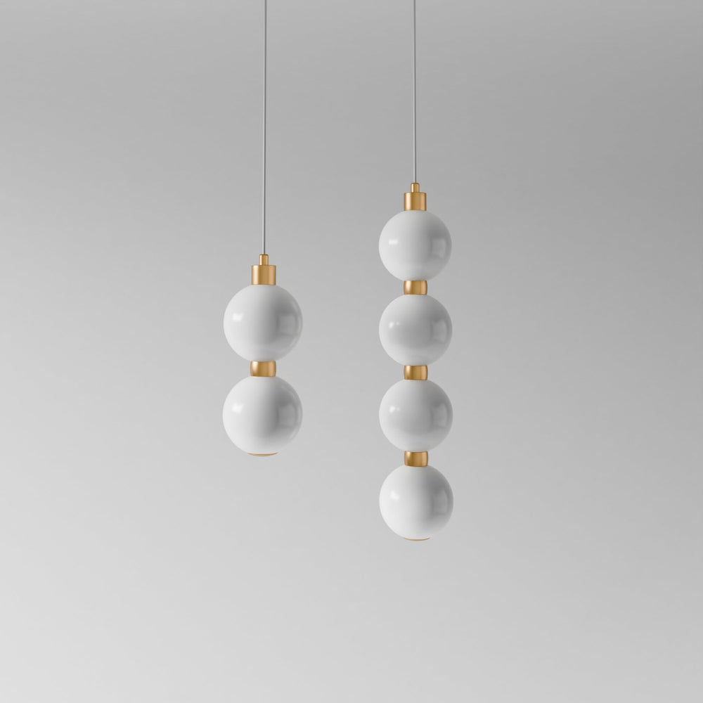 Vertical acrylic balls and sleek metal elements form a stunning, luxurious lighting effect.