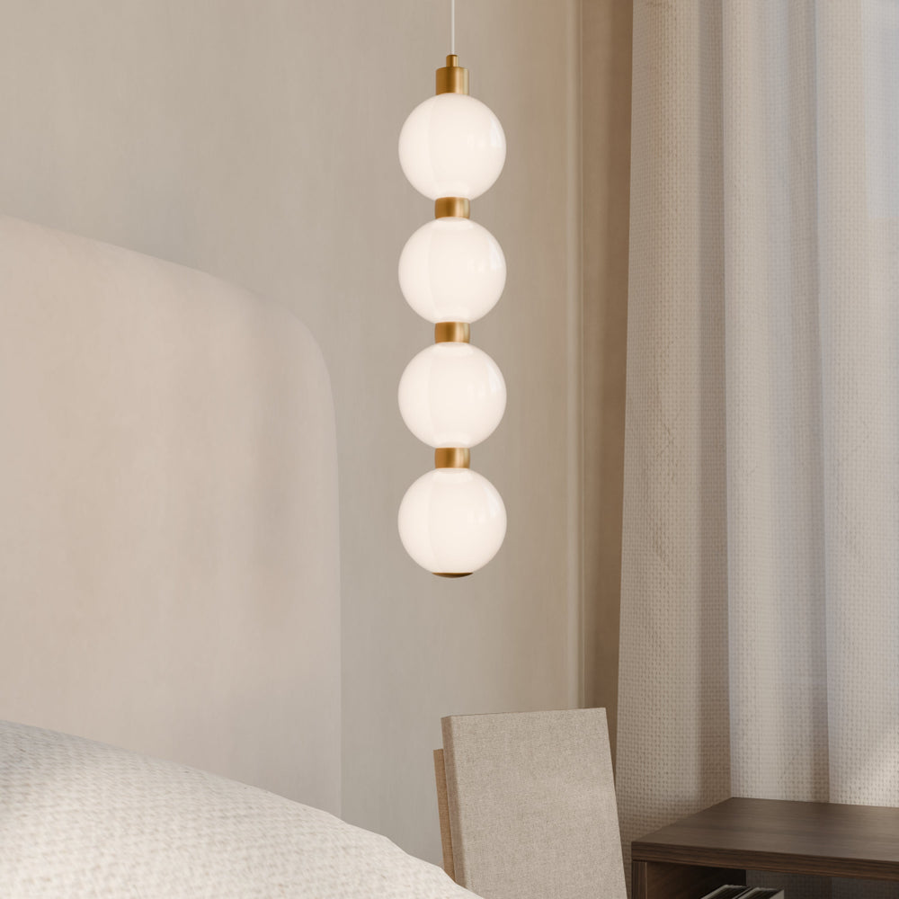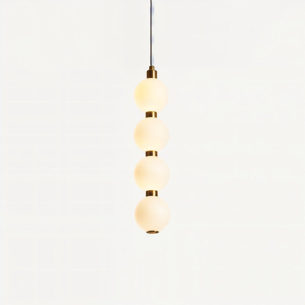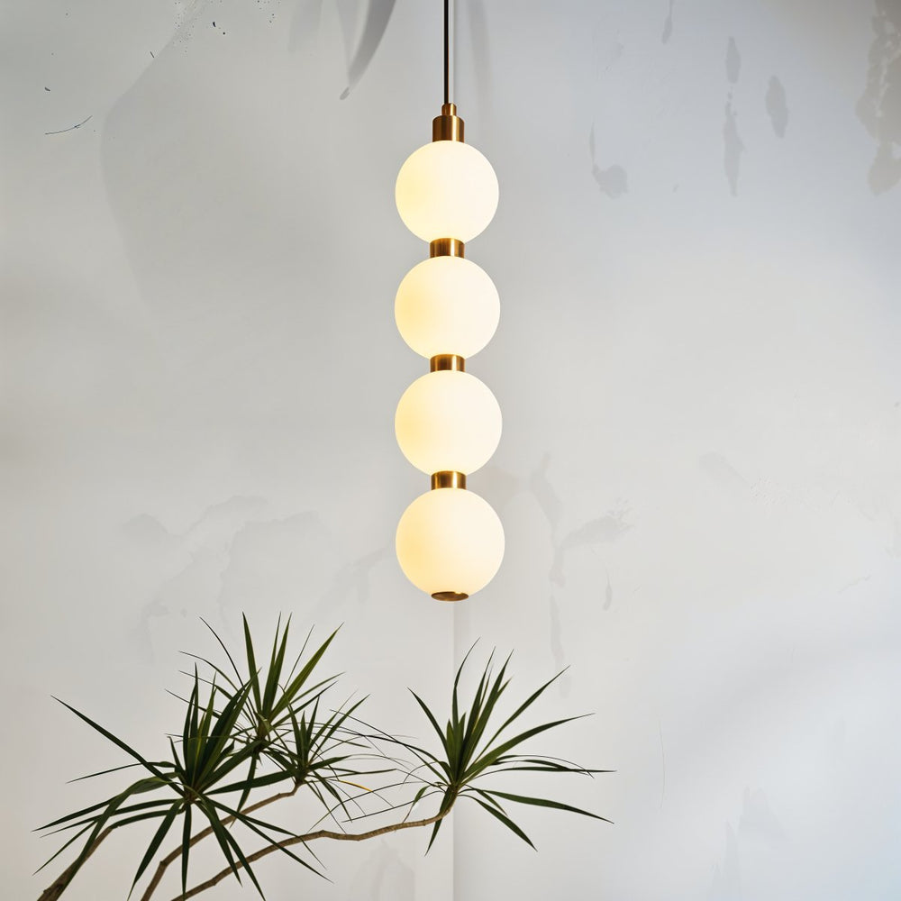 Acrylic ball housing bulbs are vertically aligned, creating a visually striking cascade of light for a captivating ambiance.