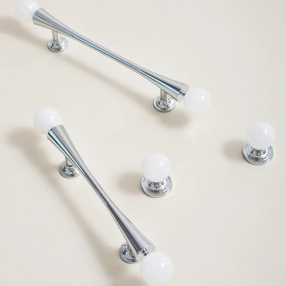 These drawer pulls combine timeless design with practicality, featuring delicate crystals for a touch of sophistication. Their comfortable round shape and flawless finish add a refined touch to your living space, effortlessly blending classic charm with contemporary style.