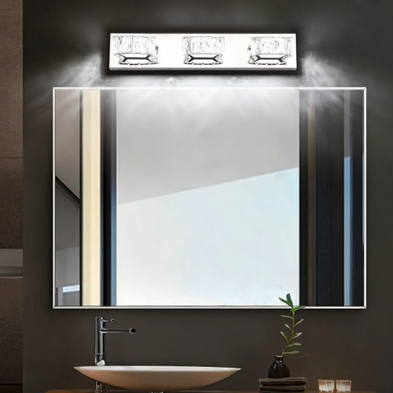 Sleek stainless steel and crystal design delivers soft, even illumination — perfect for bathroom vanities, hallways, or as stylish accent lighting in modern spaces.