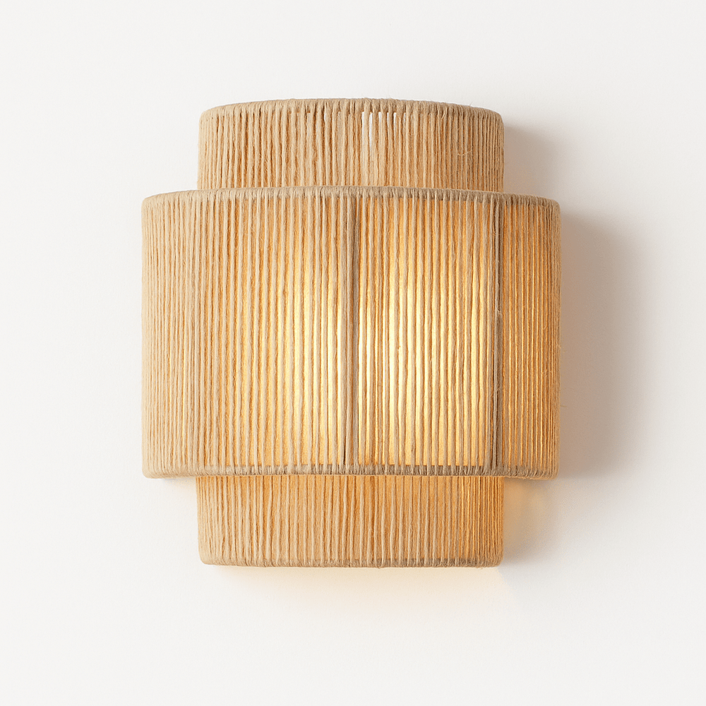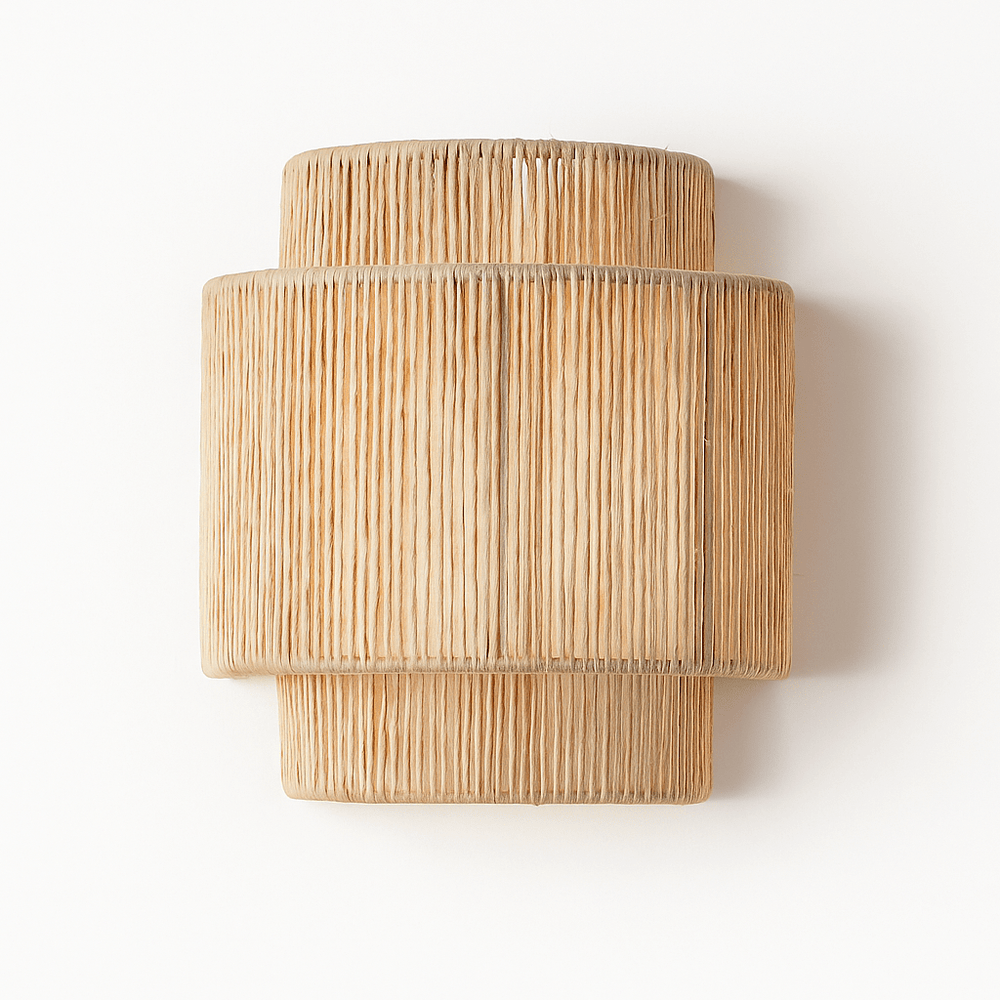 Rassa Wall Lamp is a natural light fixture crafted from bamboo and rattan with hemp rope detailing. Its layered cylindrical design diffuses light through the intricate weave, creating a warm, inviting glow while casting soft patterns on the wall. Perfect for eco-friendly or rustic interiors, this wall-mounted lamp is ideal for living rooms, bedrooms, or cozy nooks, seamlessly blending functionality with organic aesthetics.