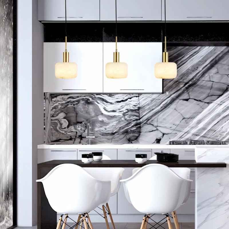 The Revina pendant light features a harmonious blend of brass and alabaster, creating an elegant and modern aesthetic. Its cylindrical alabaster shade softly diffuses light, casting a warm, natural glow that enhances any space. The brass accents lend a touch of luxury and sophistication, complementing the organic tones of the alabaster. Ideal for contemporary or minimalist interiors, this pendant exudes a timeless appeal while providing gentle ambient lighting.
