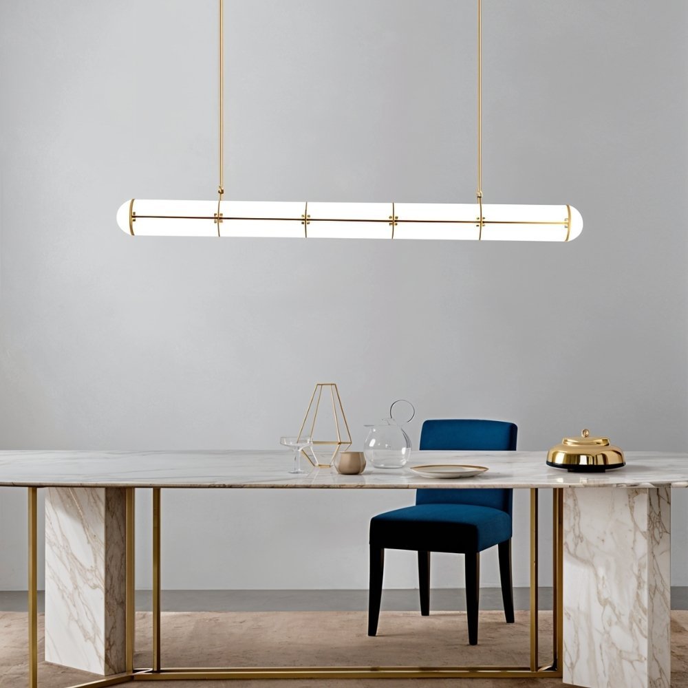 It is ideal for dining rooms, workspaces, and kitchen islands, thanks to its elongated shape and even illumination.
