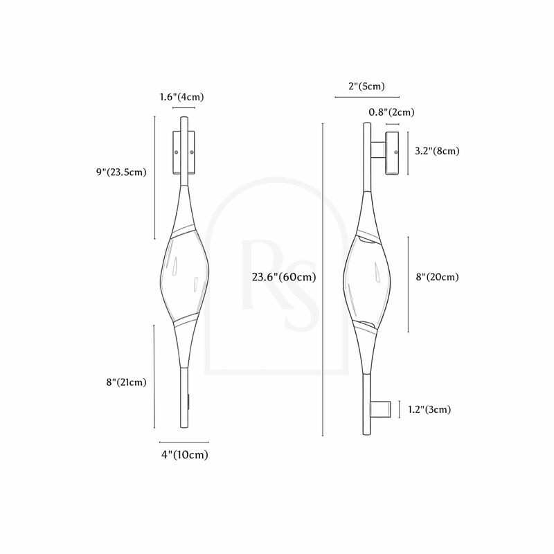 Product Dimensions: D3.9"(10cm) x H23.6"(60cm) Wattage (Lumens): 12W (1320lm) Weight: 4.4lbs (2kg), 6.6lbs (3kg) Material: Copper, Crystal Finish: Gold Light Source: Integrated LED Dimmable: Upon Request Voltage: 90-260VAC Installation Type: Wall Mount Canopy/Backplate Dimensions: 4"(10cm) x 2"(5cm) Certifications: UL, CCC, CE, CQC, EMC, FCC, GS, LVD, PSE, ROHS, SAA, and VDE