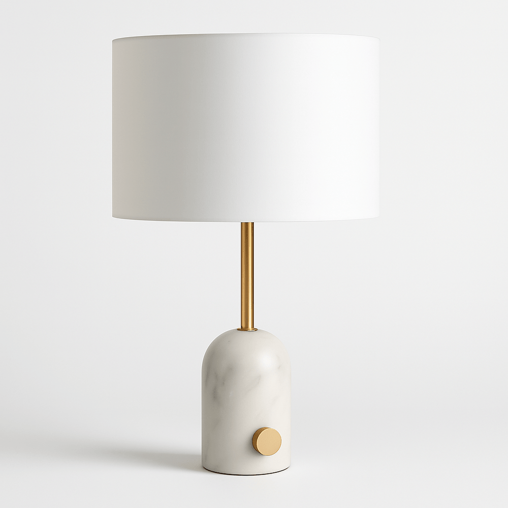 The Rosn Table Lamp is a sophisticated light fixture with a modern and minimal design. Featuring a sturdy marble base and an elegant metal stem, it offers a clean, geometric aesthetic. The simple, drum-shaped lampshade ensures even light diffusion, making it perfect for bedrooms, living rooms, or office desks. This light fixture enhances spaces with its timeless design, complementing contemporary and minimalist interiors.