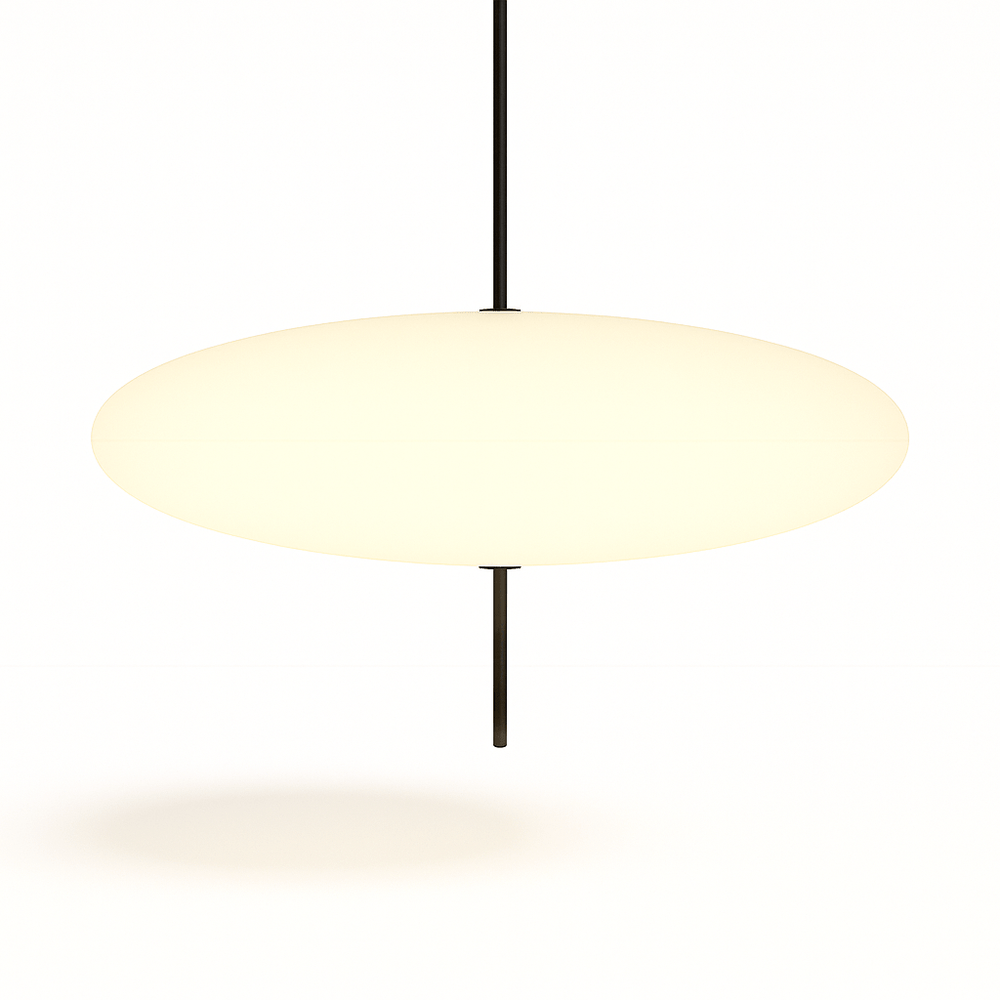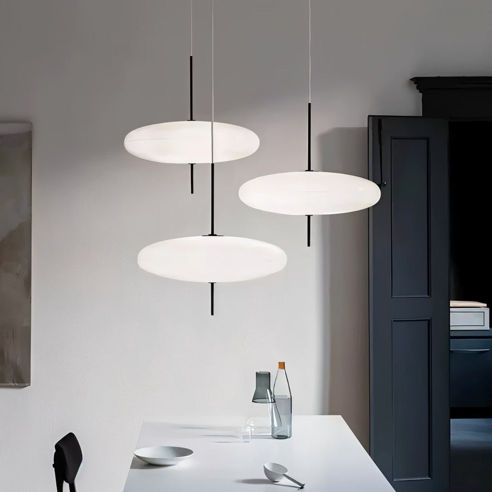 Modern flying saucer-inspired pendant light adds whimsy and sophistication to any space.