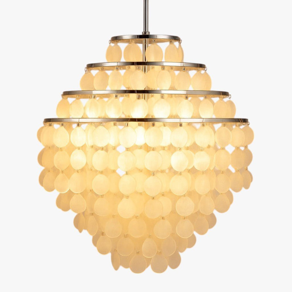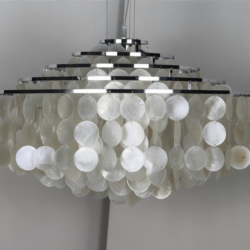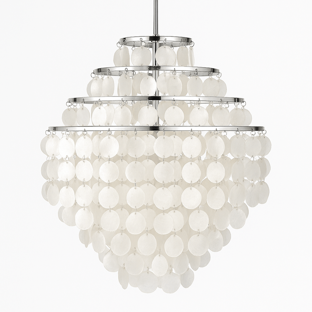 The Sdafa Shell Cluster Chandelier features a unique design incorporating elegant gold and chrome accents, providing a modern and sophisticated touch to any room. Its shell design not only adds a distinctive aesthetic but also ensures bright yet warm illumination for various occasions.