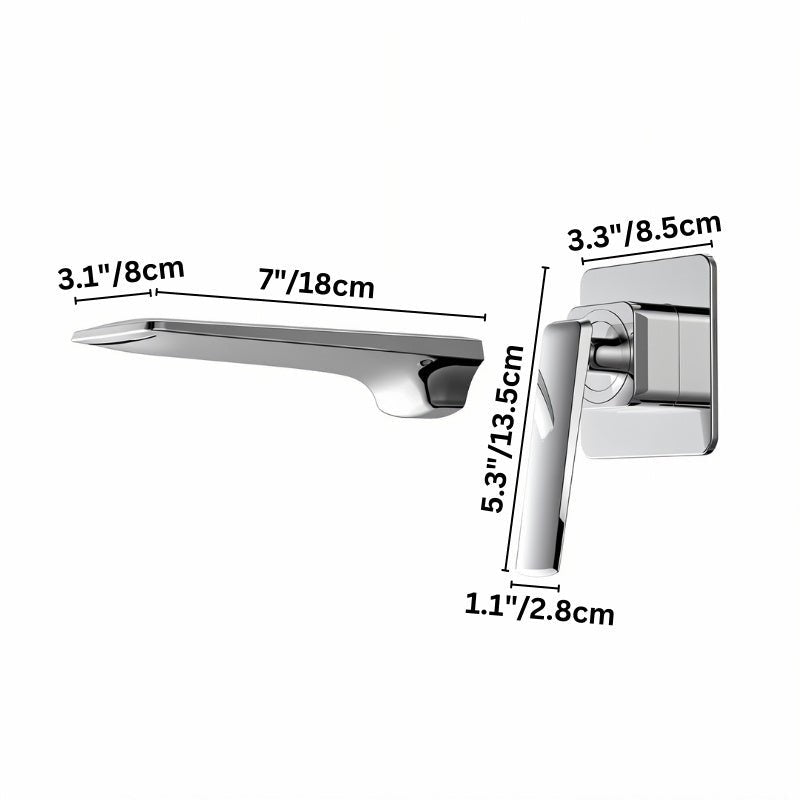 Sevif faucet features a sleek, wall-mounted design crafted from durable brass, offering both strength and longevity. Its flat, elongated spout creates a smooth waterfall-like flow, adding a touch of sophistication to any bathroom. The single lever handle is ergonomically designed for seamless control of water temperature and flow.