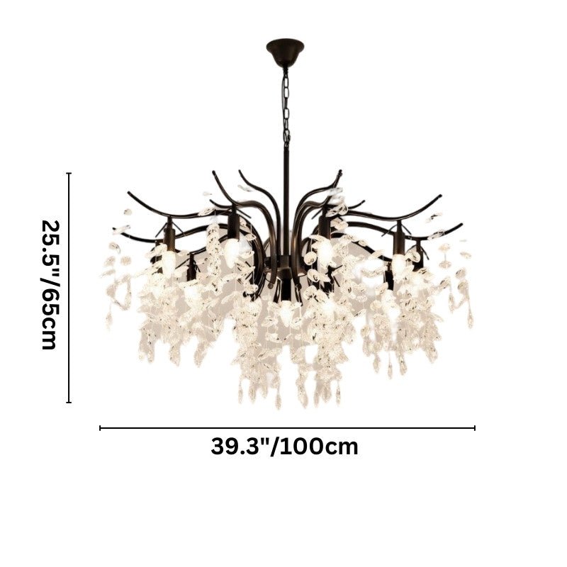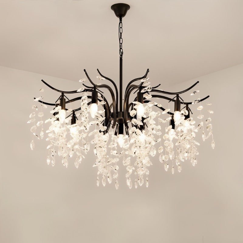 Crystal embellishments and a classic black finish create a captivating ambiance — perfect for dining rooms, living spaces, or elegant entryways.