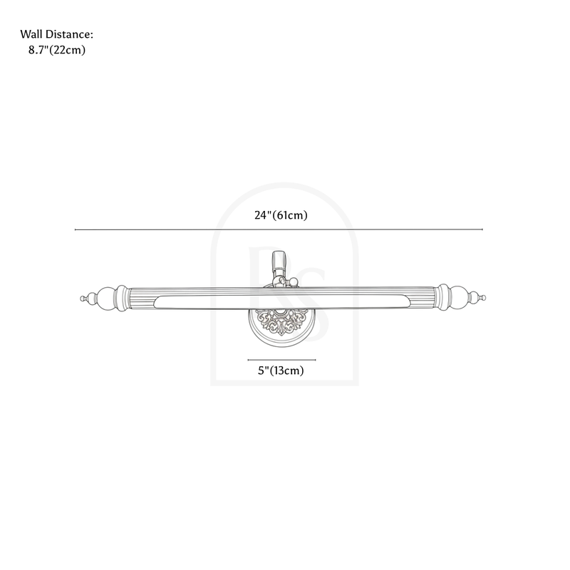 The Solrix Wall Lamp features a retro design crafted from high-quality copper, exuding vintage charm with its intricate detailing and elegant rod-shaped light fixture. The lamp's ornamental base and ribbed accents enhance its antique appeal, making it a sophisticated addition to any bathroom vanity mirror setup. Available in three sizes, it provides both functional lighting and timeless style for refined spaces.