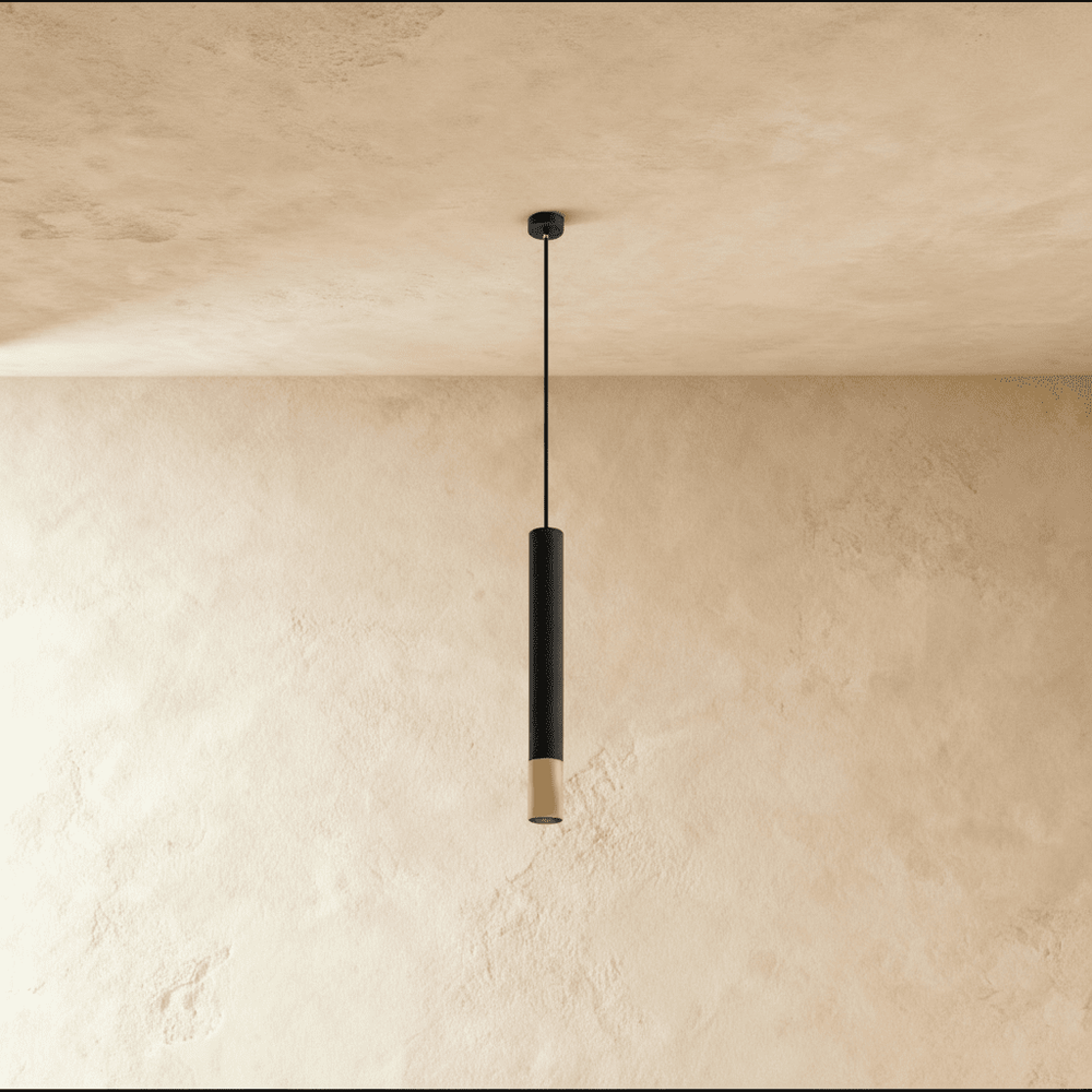 The Stark Pendant Light features a sleek cylindrical design with a contrasting gold band, adding a touch of modern elegance to any space. This minimalist light fixture is crafted from durable aluminum and is perfect for illuminating kitchen islands, dining tables, or home bars, creating a stylish focal point in contemporary interiors.