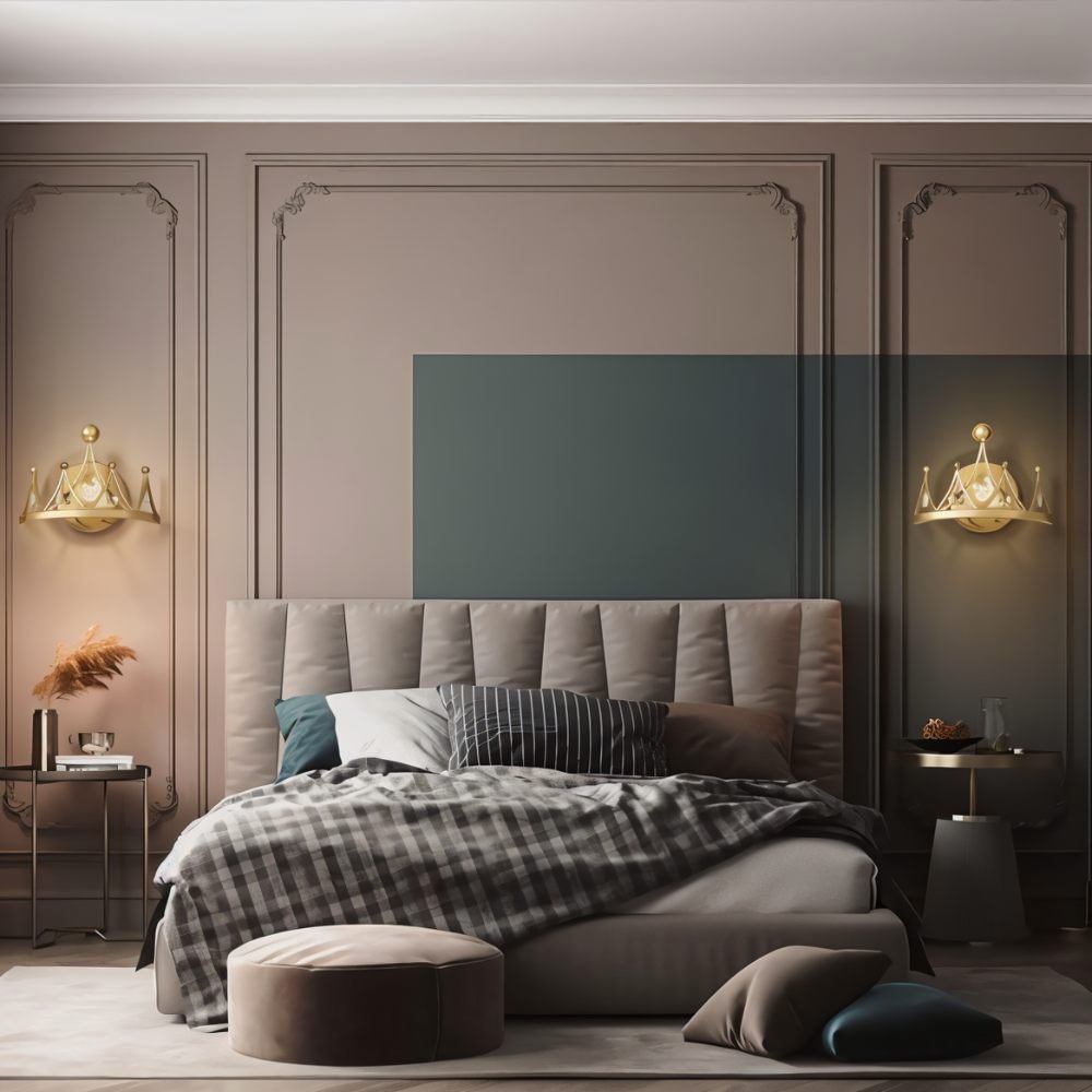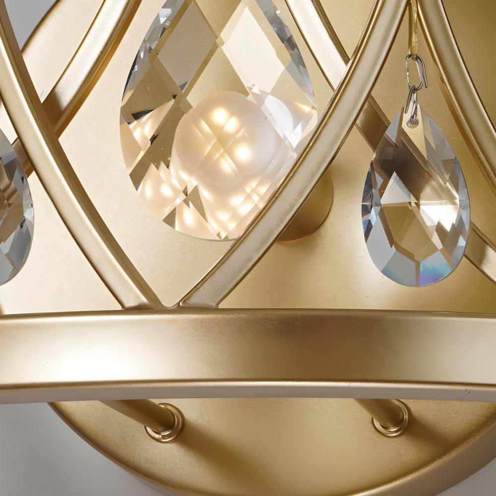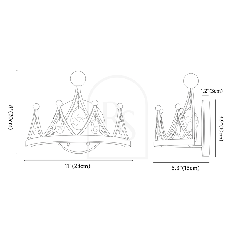 Stemma Wall Lamp is a regal light fixture crafted from iron and crystal, featuring a crown-inspired design that adds a touch of luxury to any space. The golden iron frame is adorned with crystal accents that reflect light beautifully, creating a warm and elegant glow. Ideal for bedrooms, hallways, or living areas, this decorative wall-mounted light fixture enhances interiors with its refined craftsmanship and royal charm, making it a perfect statement piece for modern or classic decor styles.