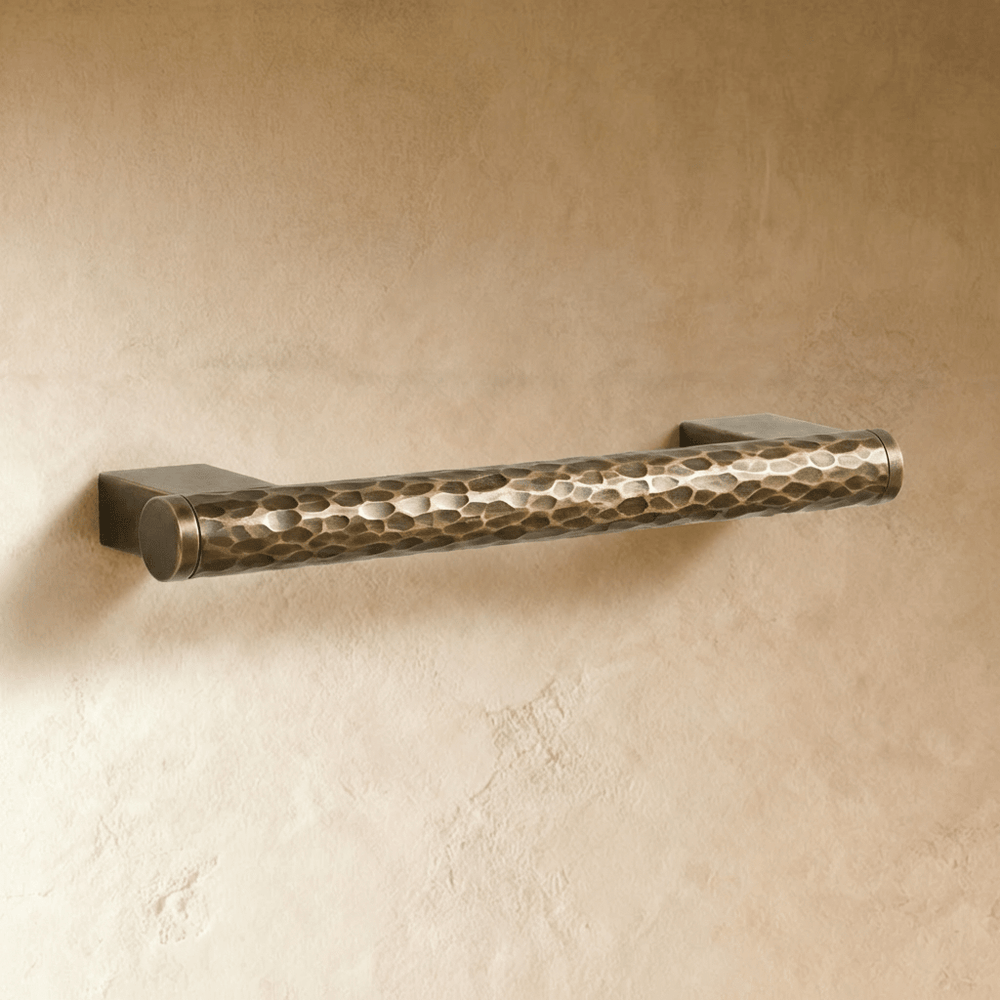 The precision-textured, subtly hammered surface adds depth and artisanal character to the brass.