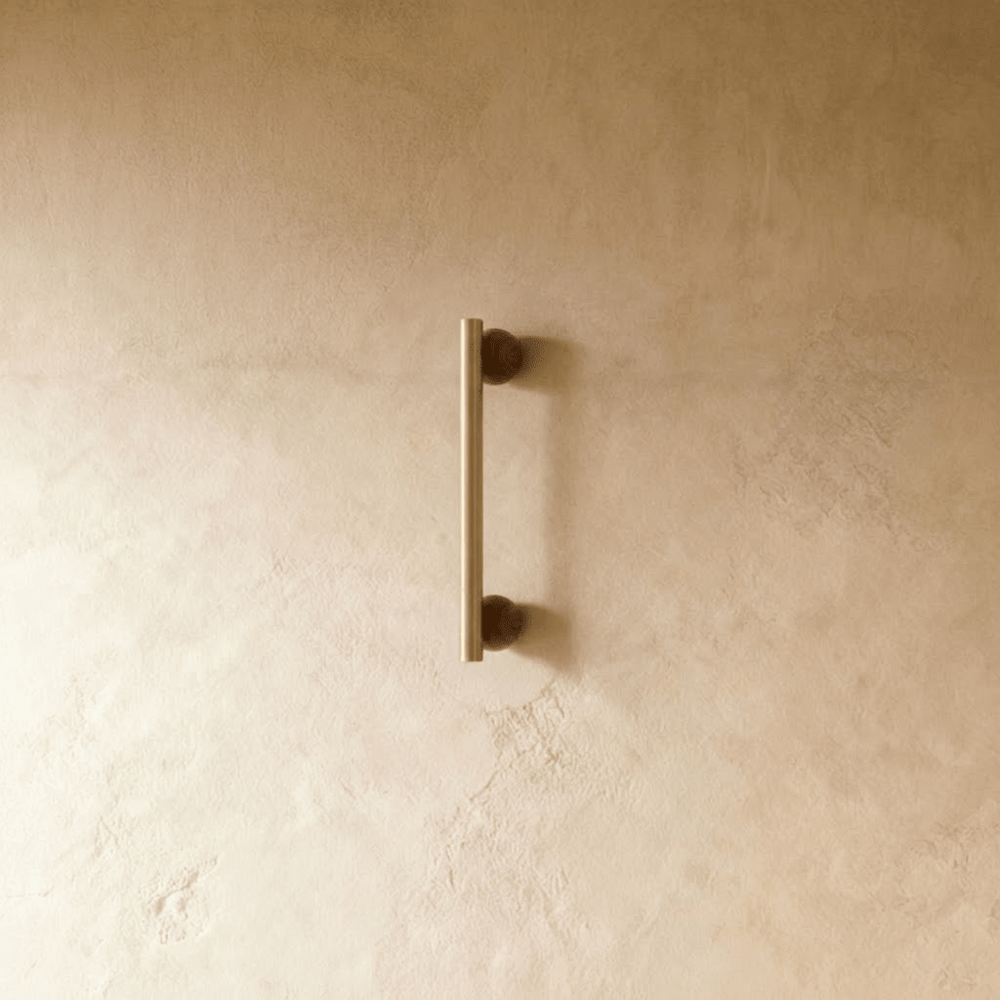 The Strux Knob & Pull Bar set is the perfect mix of warm walnut wood and solid brass, giving your cabinets a look that feels modern but still cozy and natural. The pulls have a clean brass bar with smooth walnut ends for a soft, designer contrast, and the matching knob features a rounded walnut sphere on a brass base for a beautifully coordinated finish. It works great on kitchen cabinets, drawers, wardrobes, dressers, and built-ins, anywhere you want hardware that feels elevated without looking too formal.