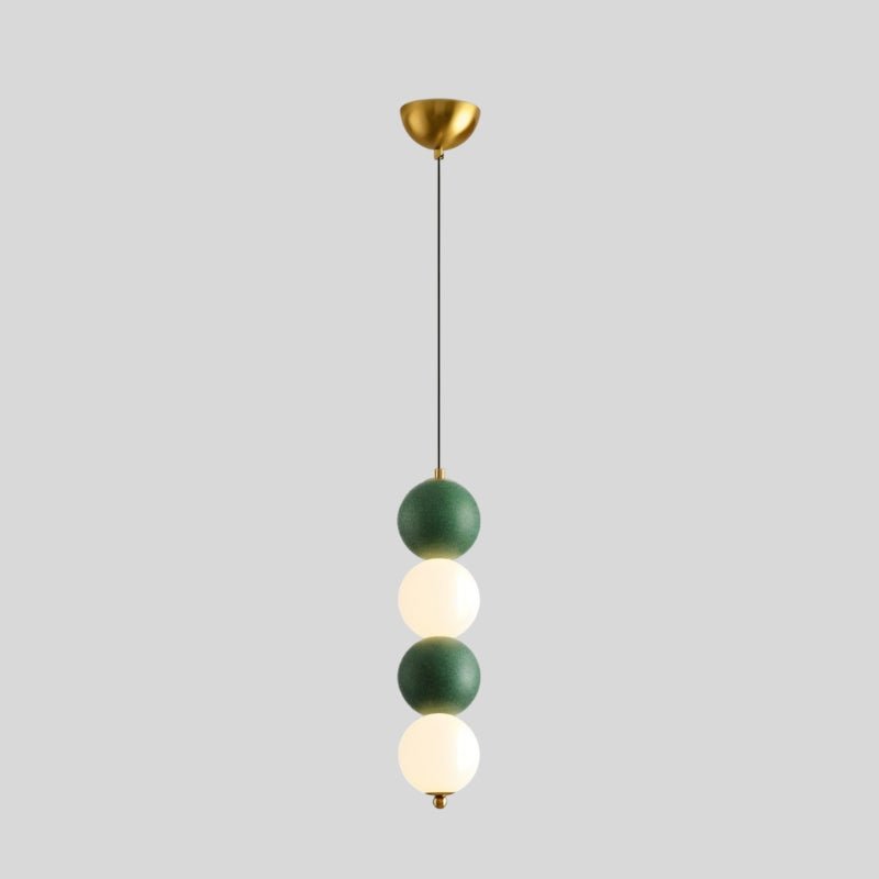 The Sveig Pendant Light showcases a bold orb balls design with stacked metal spheres and frosted glass globes, creating a striking contrast in texture and illumination. Crafted from metal and iron, this modern light fixture provides a soft, diffused glow, perfect for bedside areas, reading nooks, dining spaces, or contemporary interiors. Its sleek silhouette enhances minimalist, mid-century, and Scandinavian designs, making it a standout accent in any setting.