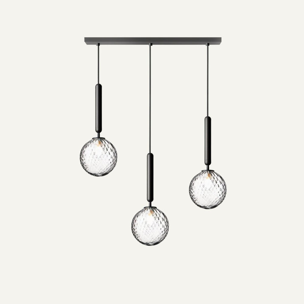The Temen Pendant Light features a captivating design with spherical glass shades and a sleek iron frame. This elegant light fixture is perfect for adding a touch of sophistication to dining rooms, kitchens, and living spaces, creating a warm and inviting ambiance.