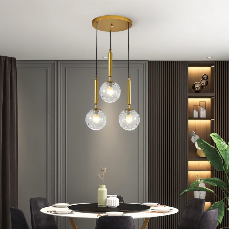 The Temen Pendant’s round glass globe design adds contemporary elegance and warmth to dining areas.