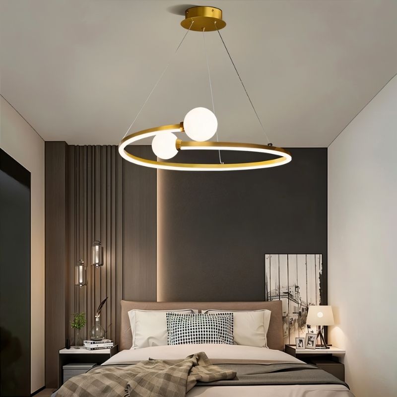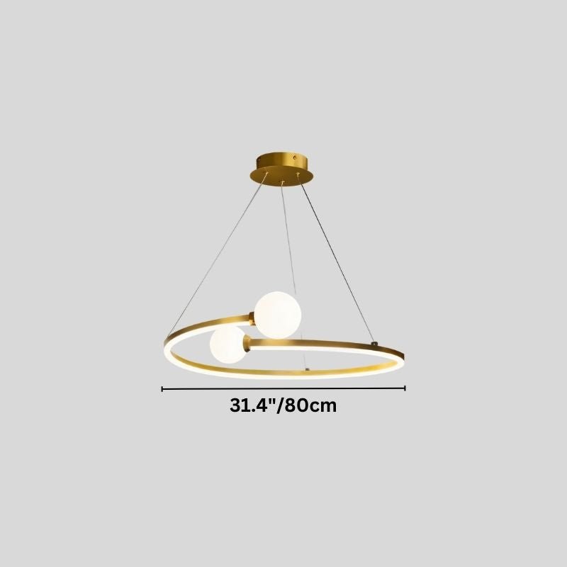 The Tenvic Chandelier is a modern light fixture with a suspended circular frame, accented by two spherical acrylic diffusers. Made from durable iron and acrylic, it casts a balanced, ambient glow. Its geometric design suits bedrooms, dining areas, and contemporary living spaces. Available in four sizes, this statement chandelier complements minimalist and upscale interiors. Ideal for high ceilings, it enhances spatial depth with its floating aesthetic.