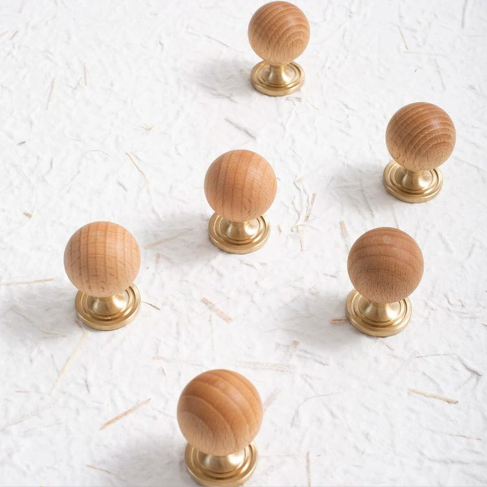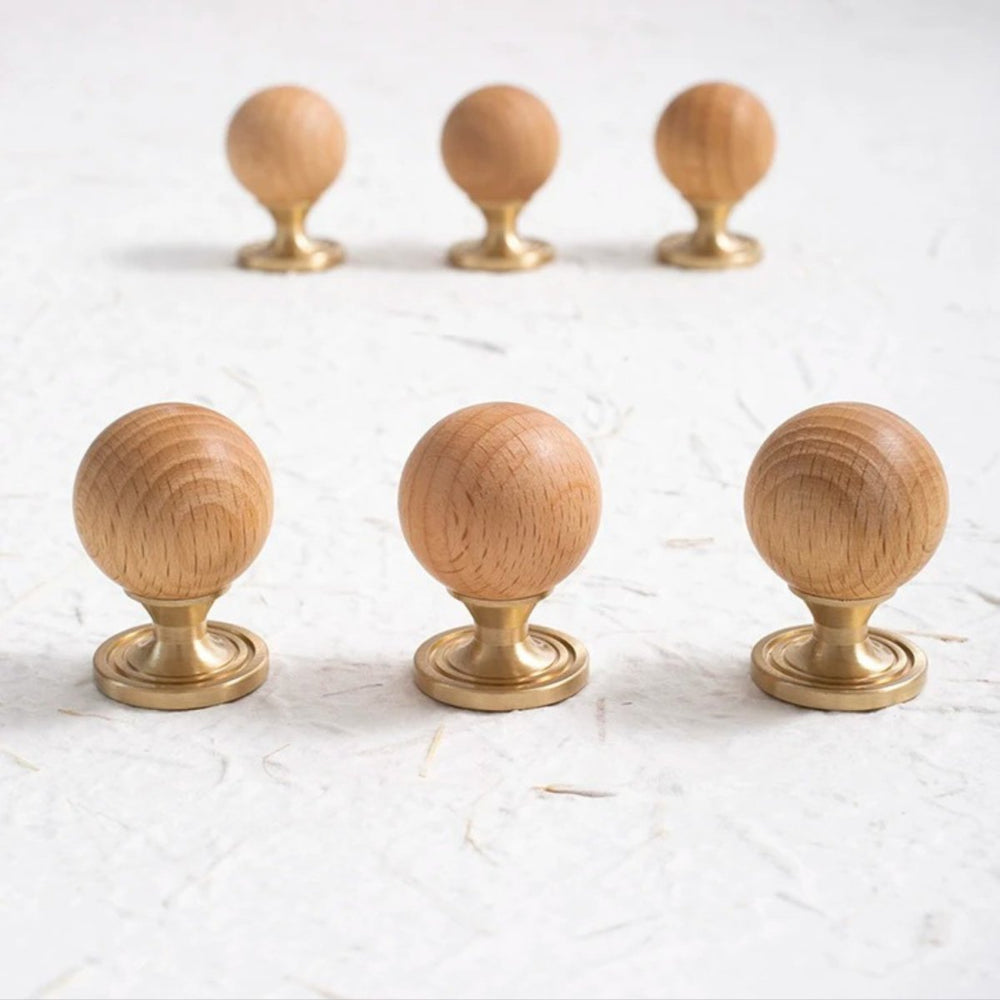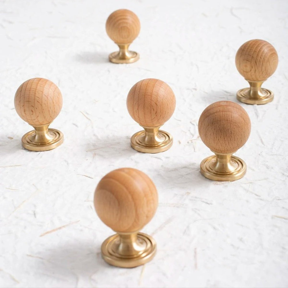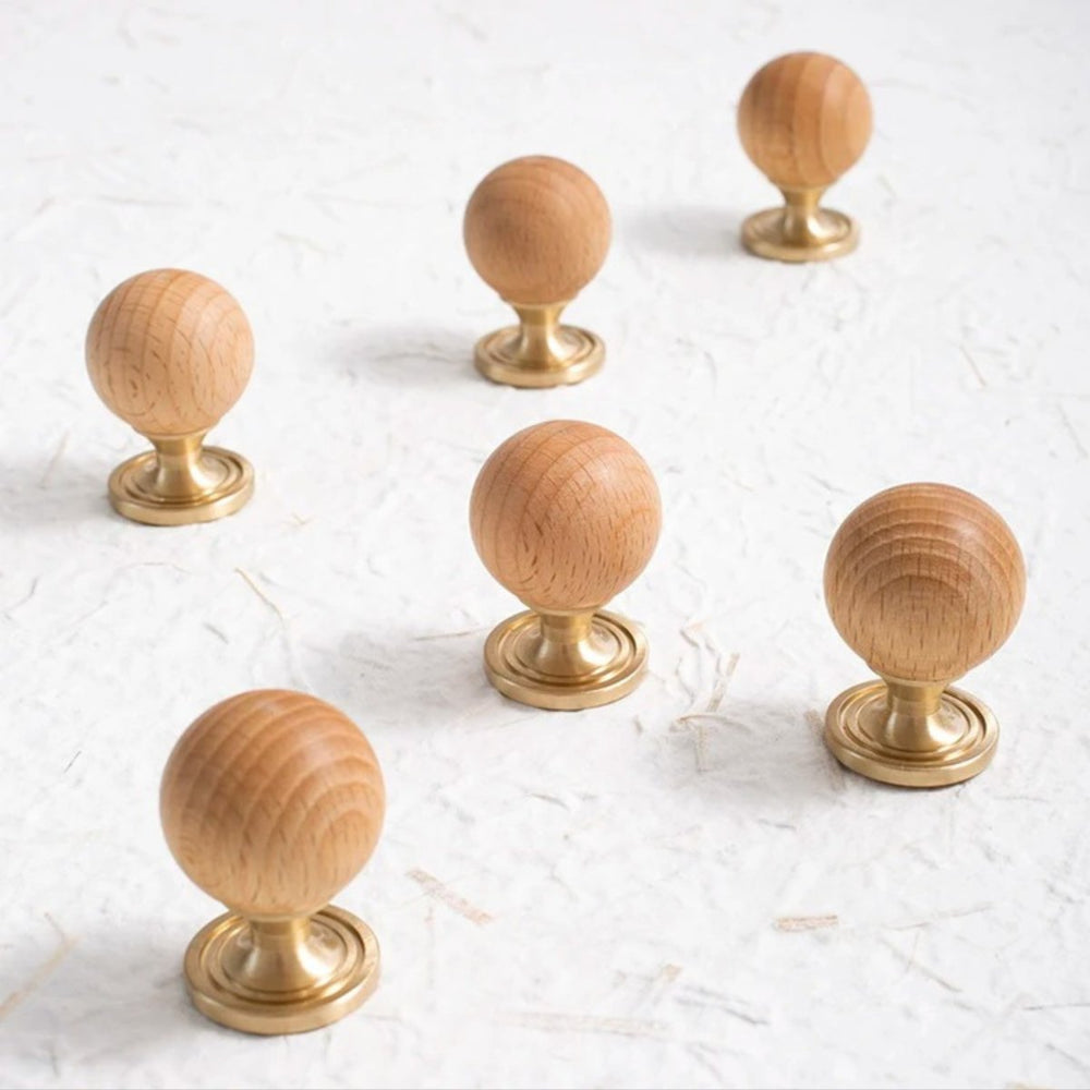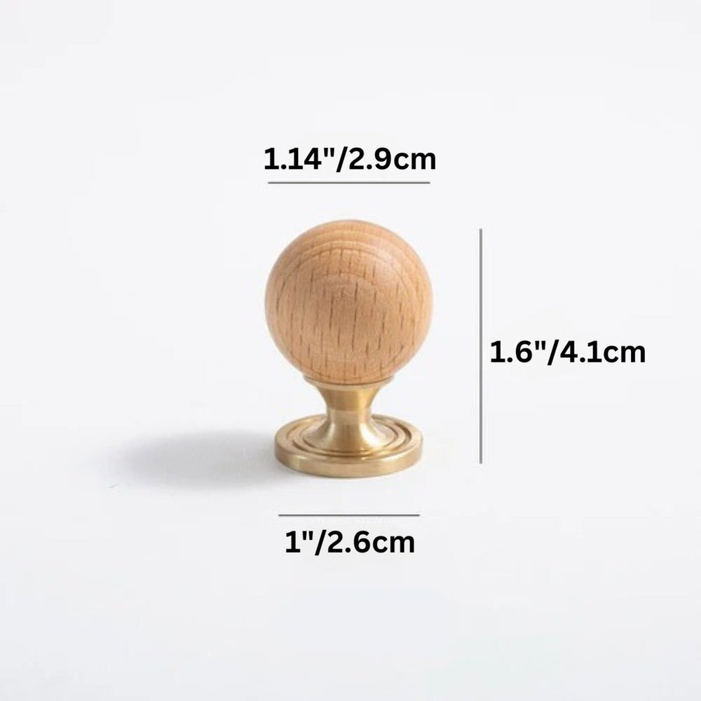 The timeless design, featuring a warm wood ball and elegant brass, adds a touch of sophistication to any wardrobe or drawer. With its single-hole circular design, installation is a breeze, and the small knob ensures both style and practicality.